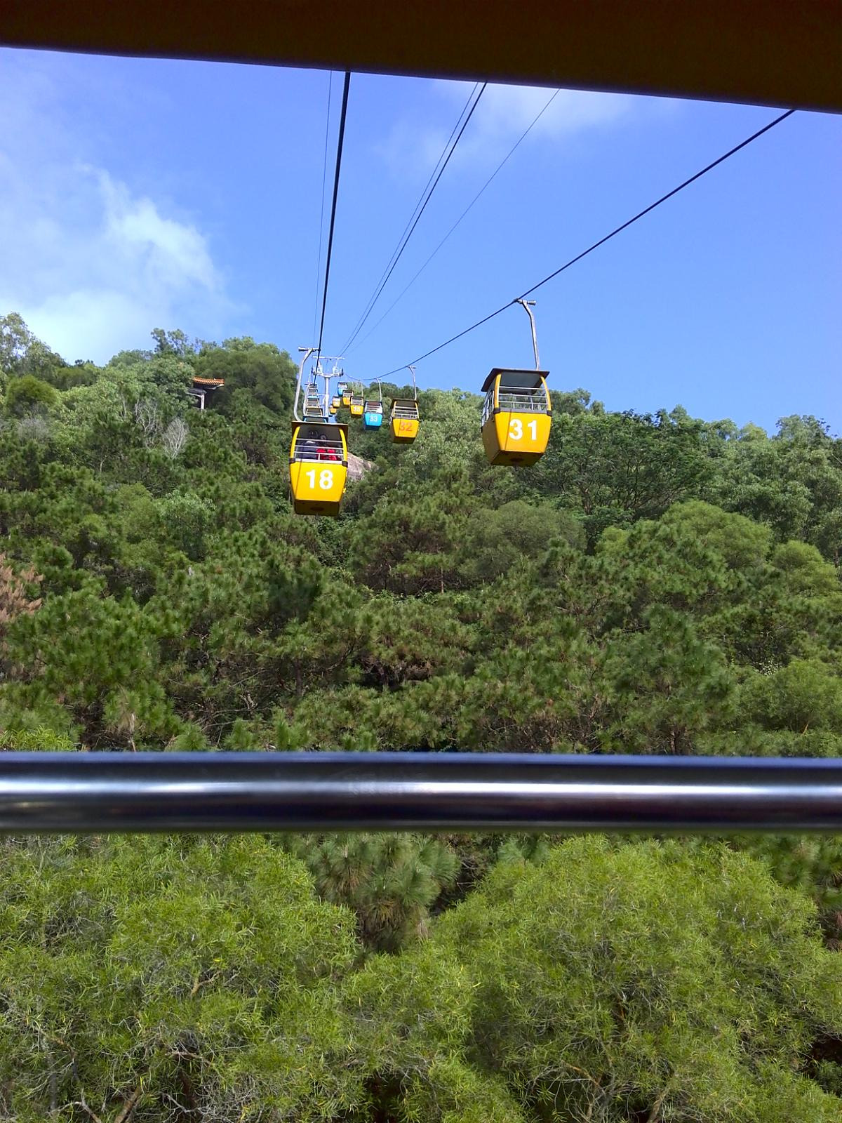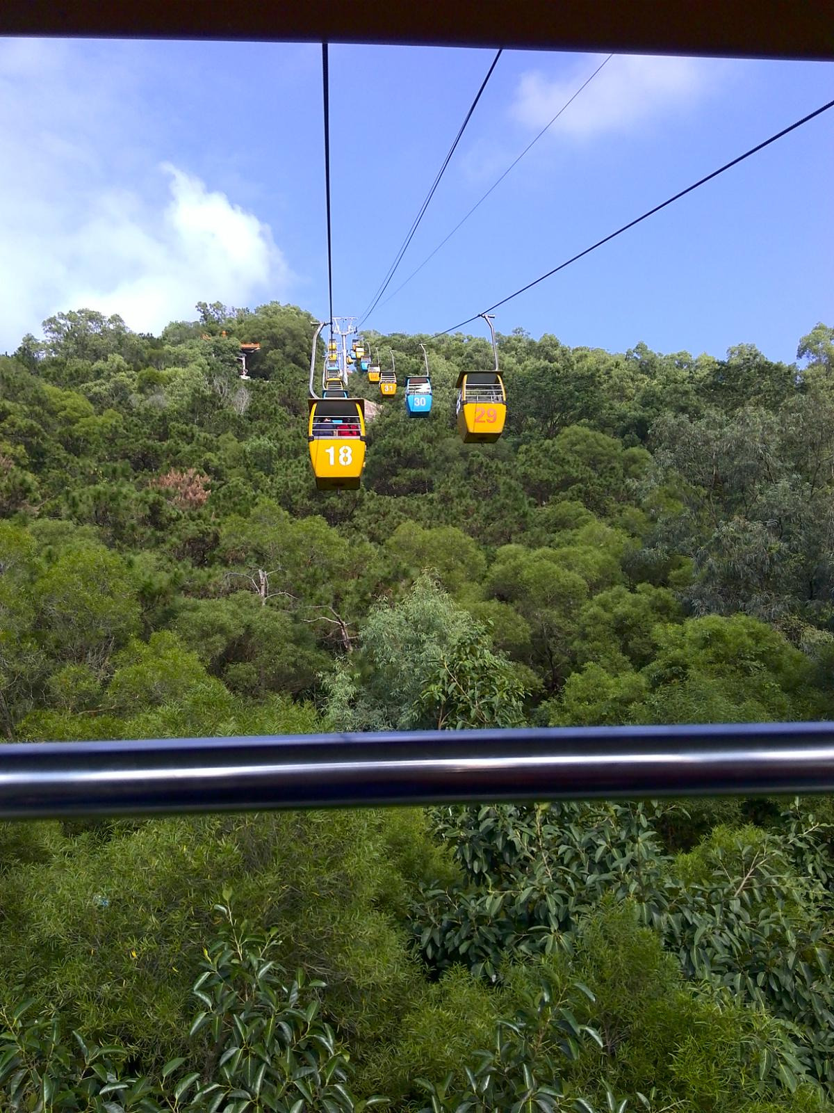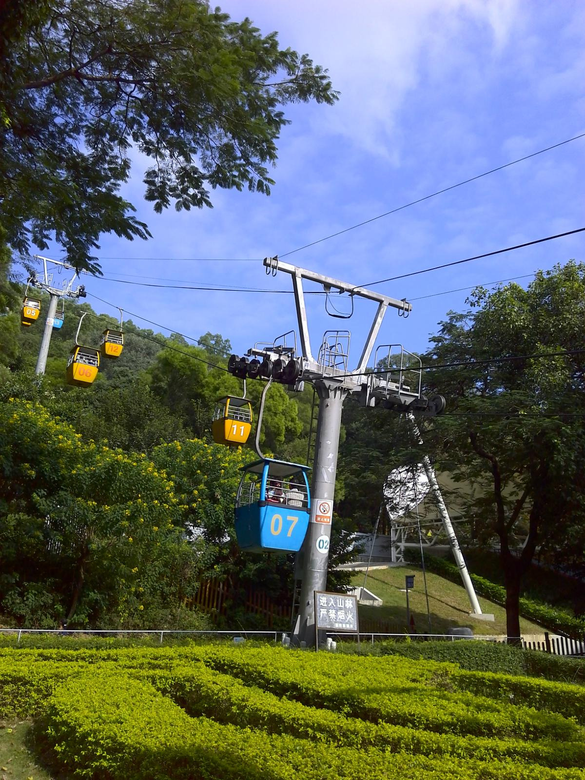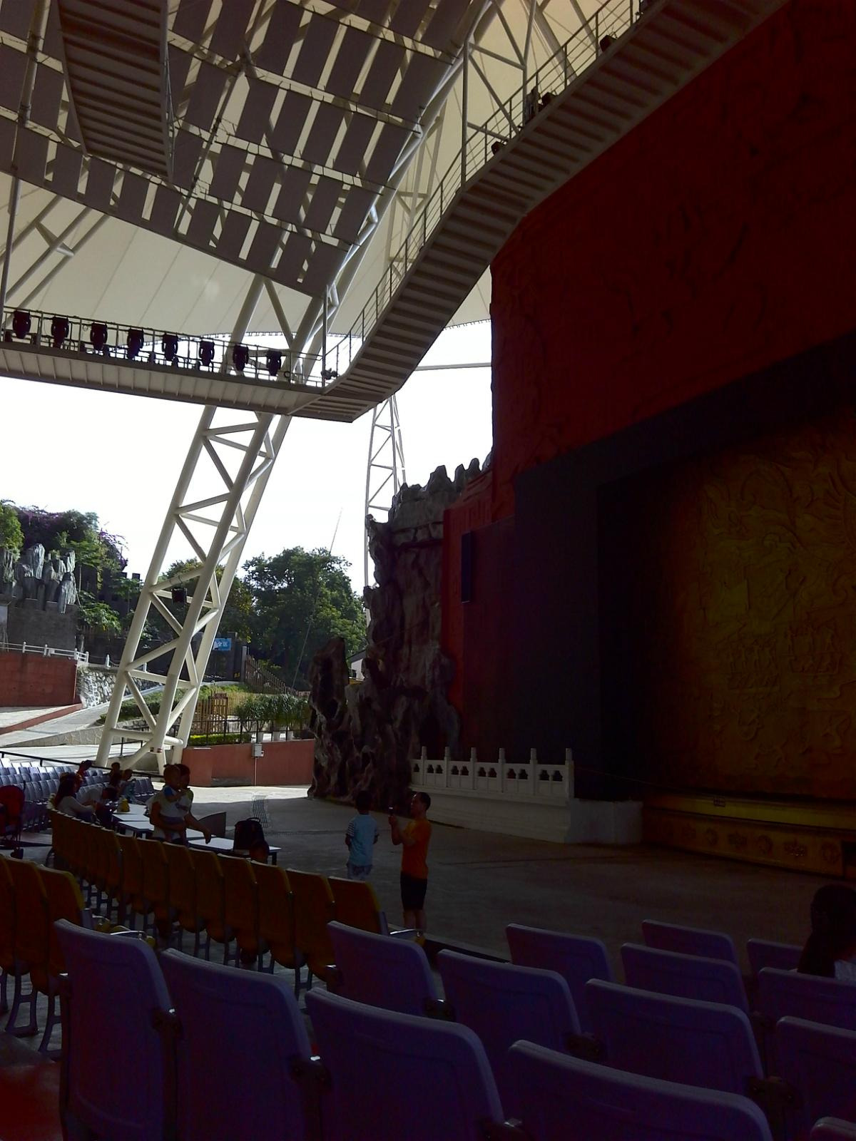 出了露天表演场后,有一个观景索道,如乘坐需要另外买票,建议乘坐,因为可以乘坐索道上山,在顶处可以远眺澳门的建筑群和珠海的建筑群,也可以拍到很多好照片,性价比还是很高很值得的,此处约花四十分钟游览。