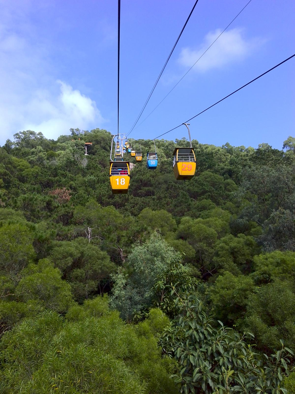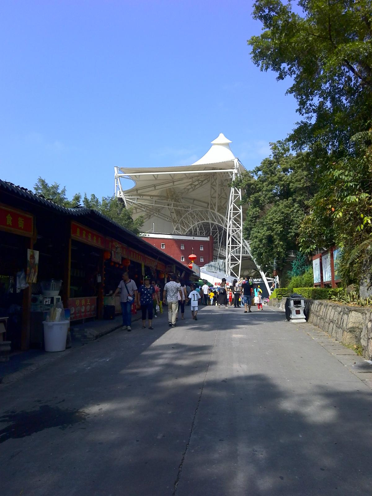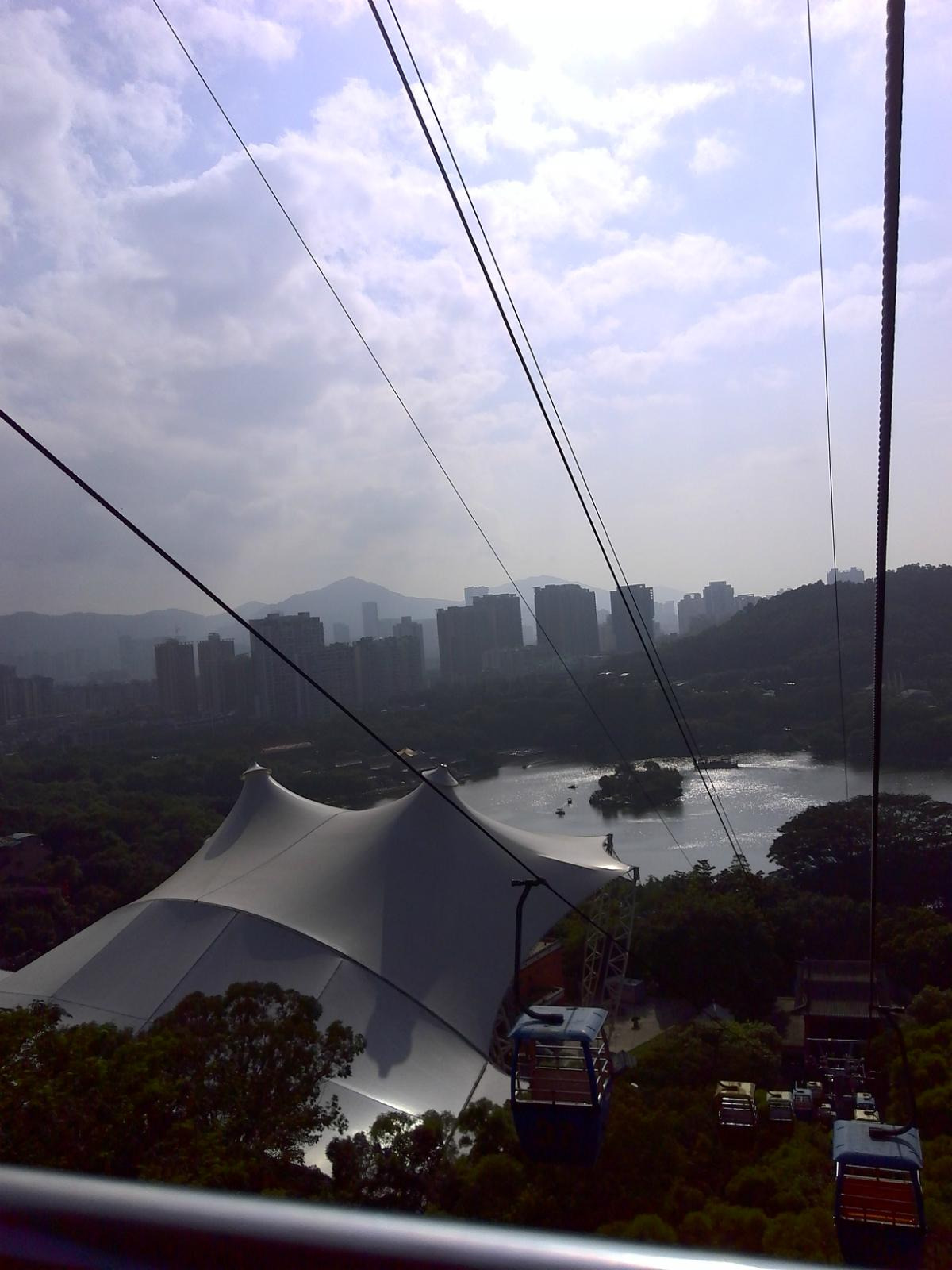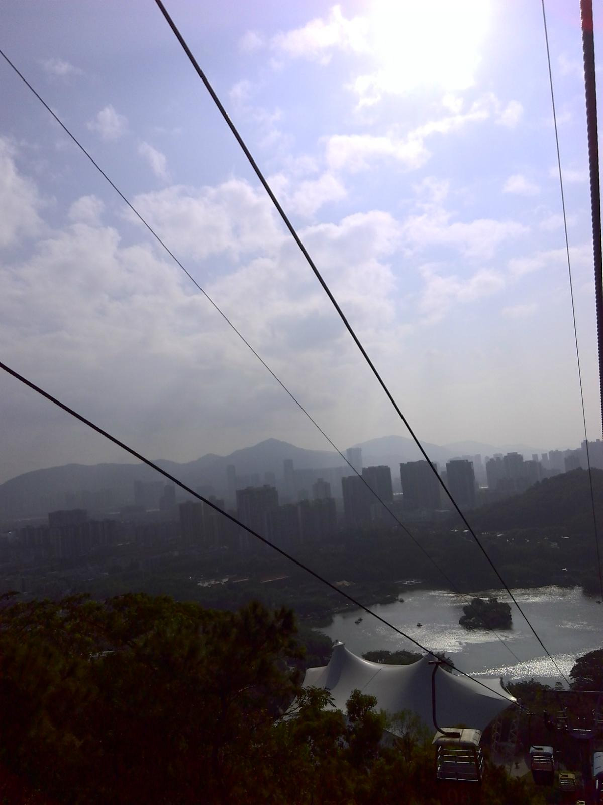 出了露天表演场后,有一个观景索道,如乘坐需要另外买票,建议乘坐,因为可以乘坐索道上山,在顶处可以远眺澳门的建筑群和珠海的建筑群,也可以拍到很多好照片,性价比还是很高很值得的,此处约花四十分钟游览。