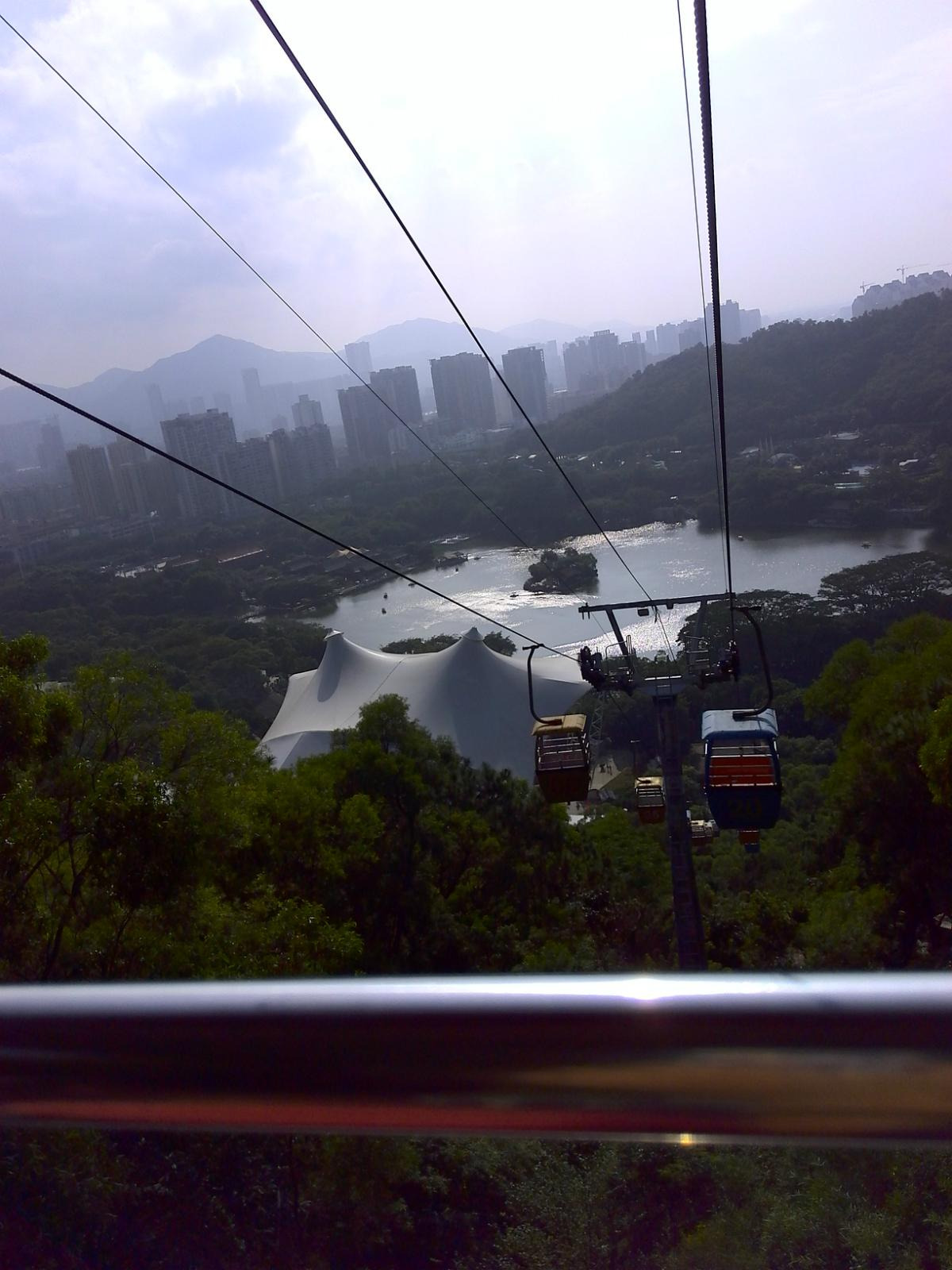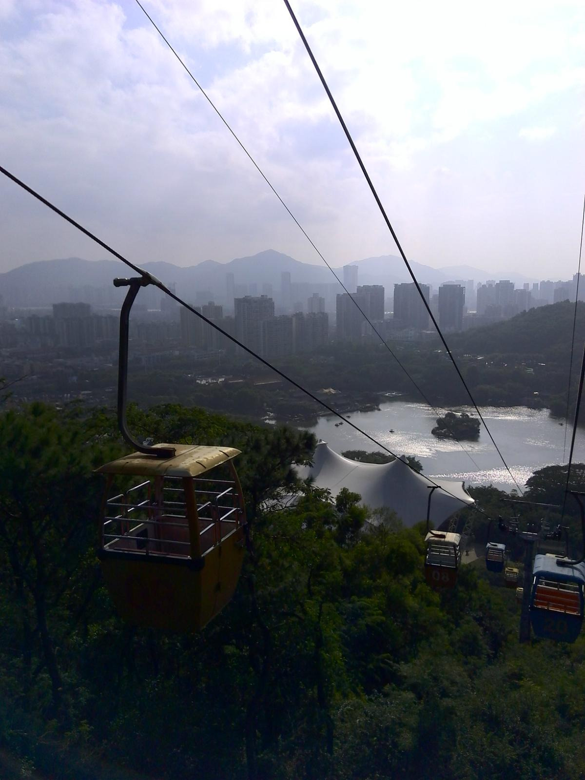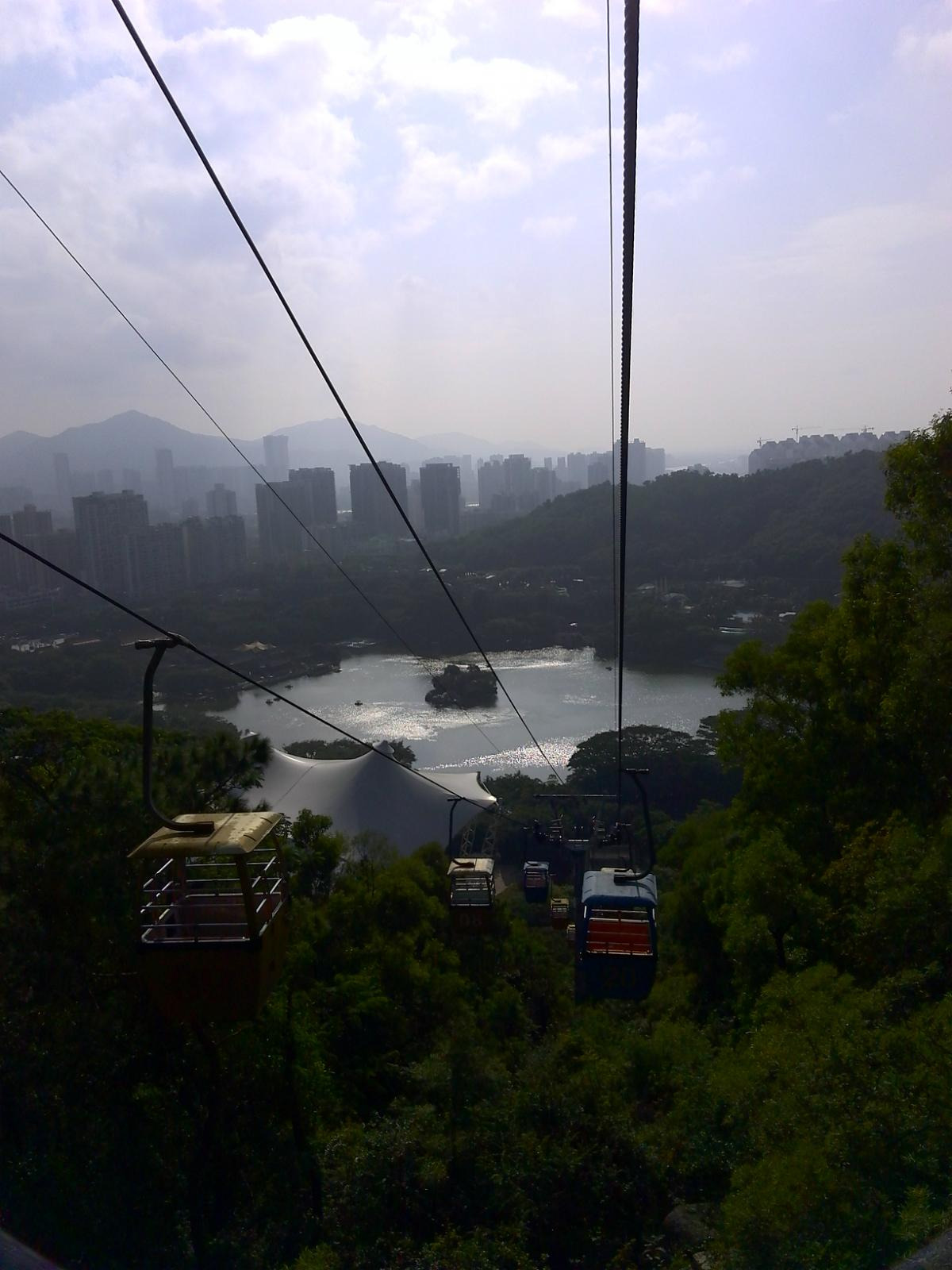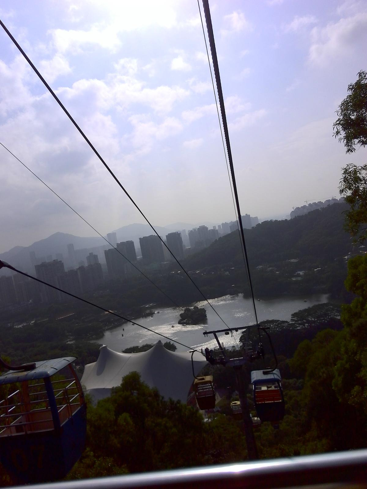 出了露天表演场后,有一个观景索道,如乘坐需要另外买票,建议乘坐,因为可以乘坐索道上山,在顶处可以远眺澳门的建筑群和珠海的建筑群,也可以拍到很多好照片,性价比还是很高很值得的,此处约花四十分钟游览。