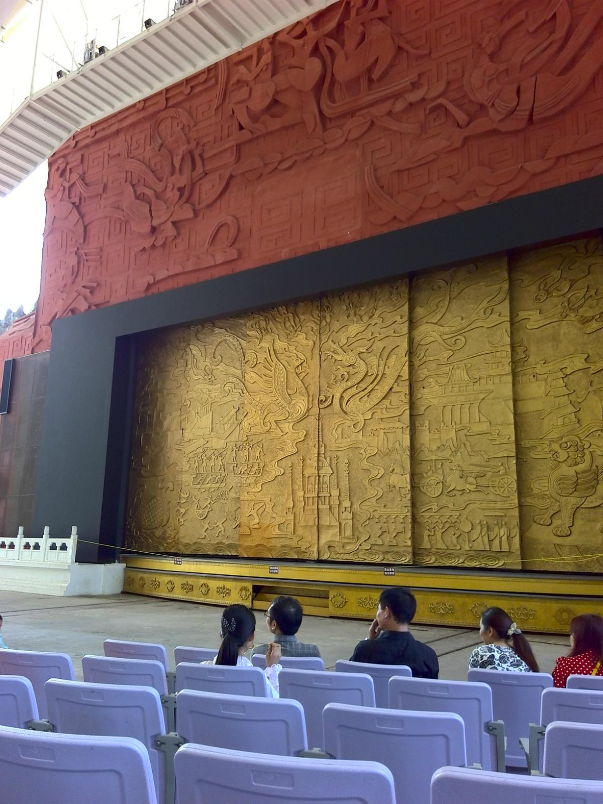 游览完后建议逆时针游览,往右走是平湖秋月景点,自然也是仿照的杭州西湖的景点,沿着路直走有牛郎织女石,不是在一起的,是分开的互相望着对方,也比较浪漫,这一路有很多小吃店,卖羊肉串和一些小吃,价格都适中,再往前走有万佛壁,有很多佛,喜欢佛教文化的可以细细感受,然后映入演练的是一个露天表演厅,每天都有表演,大家可以看好时间表,观看表演。