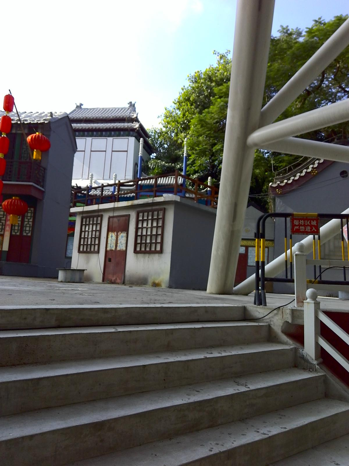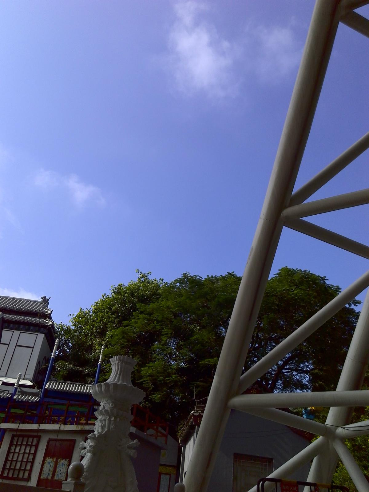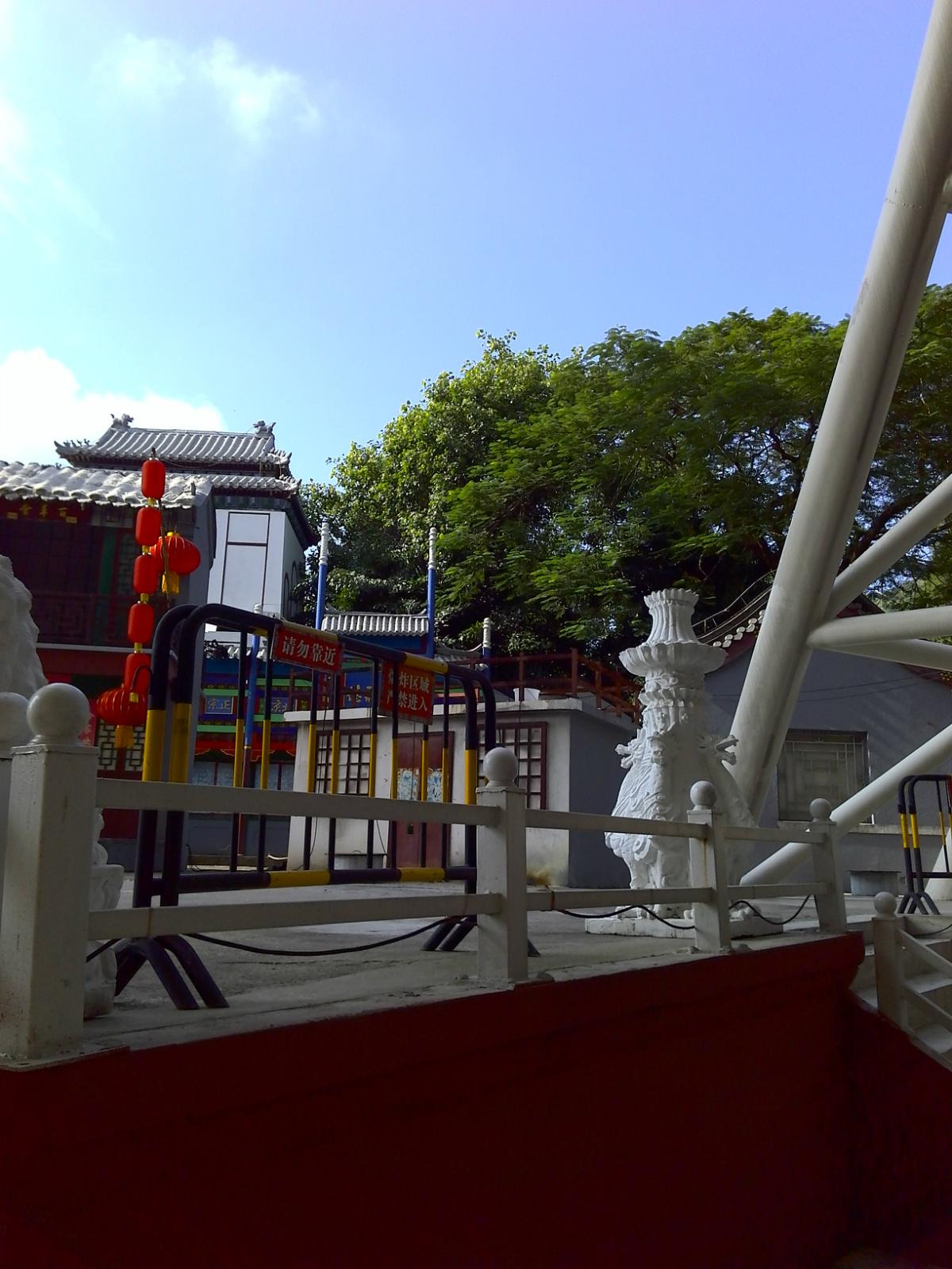 乘坐索道下来后,可以继续往前走,经过五孔桥进入皇家乐园区域,有很多机动游戏,比如碰碰车,小过山车,摩天轮等,都需要另外买票。摩天轮不建议乘坐,因为上面玻璃处都是钢丝网,视觉享受很小,几乎看不到外面的风景。在皇家乐园玩完后,建议继续前行,可以到万福阁、千祥阁等景点,游览一遍感受古迹,去的时候湖里还有很多荷花,另外此处也可乘船游湖。在这里还能看到隔壁的梦幻水城的一些设施,如眼镜王蛇滑道和旋转滑梯等。