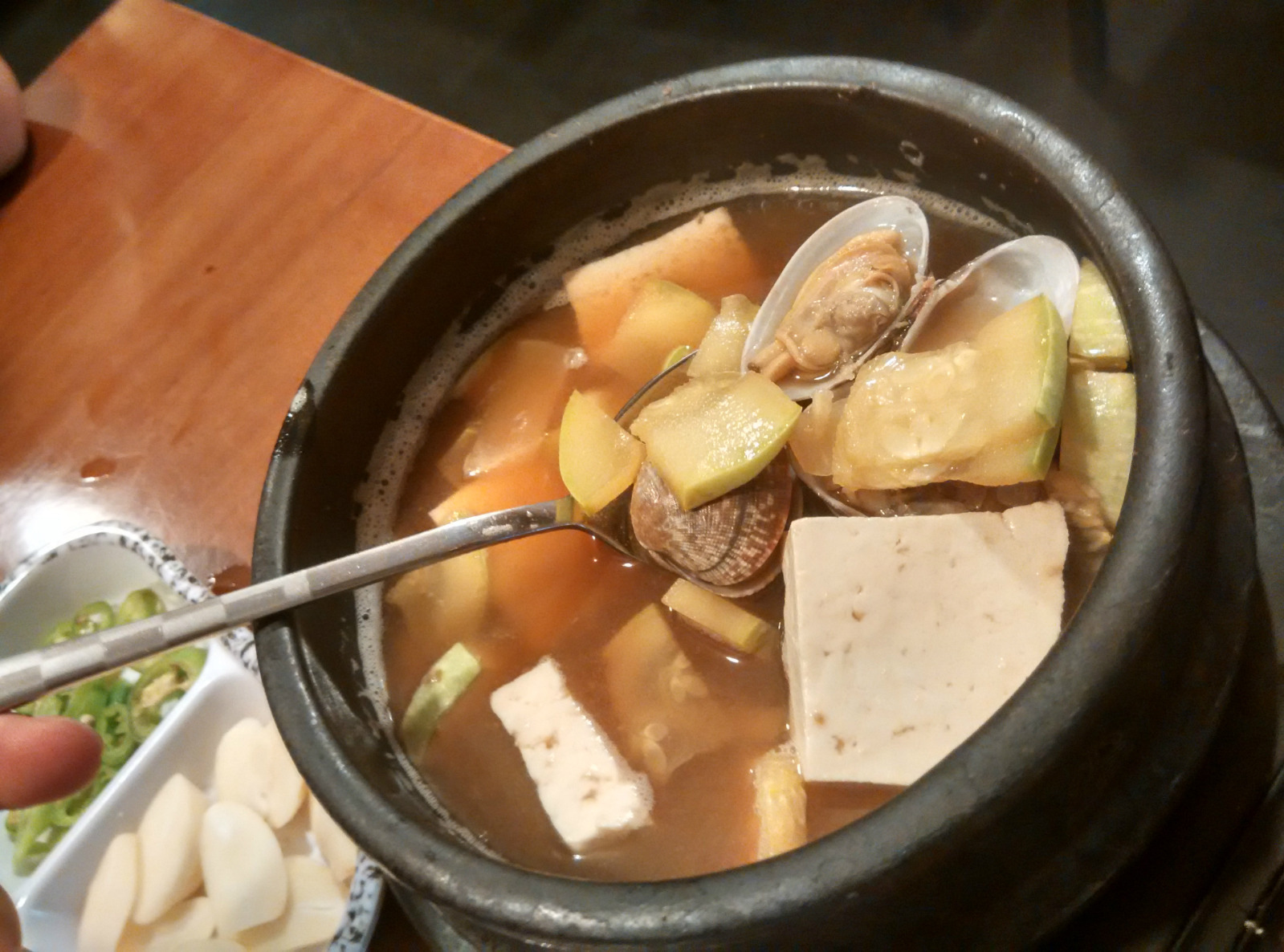 套餐里的酱汤,味道不错,上来的时候还 在沸腾。