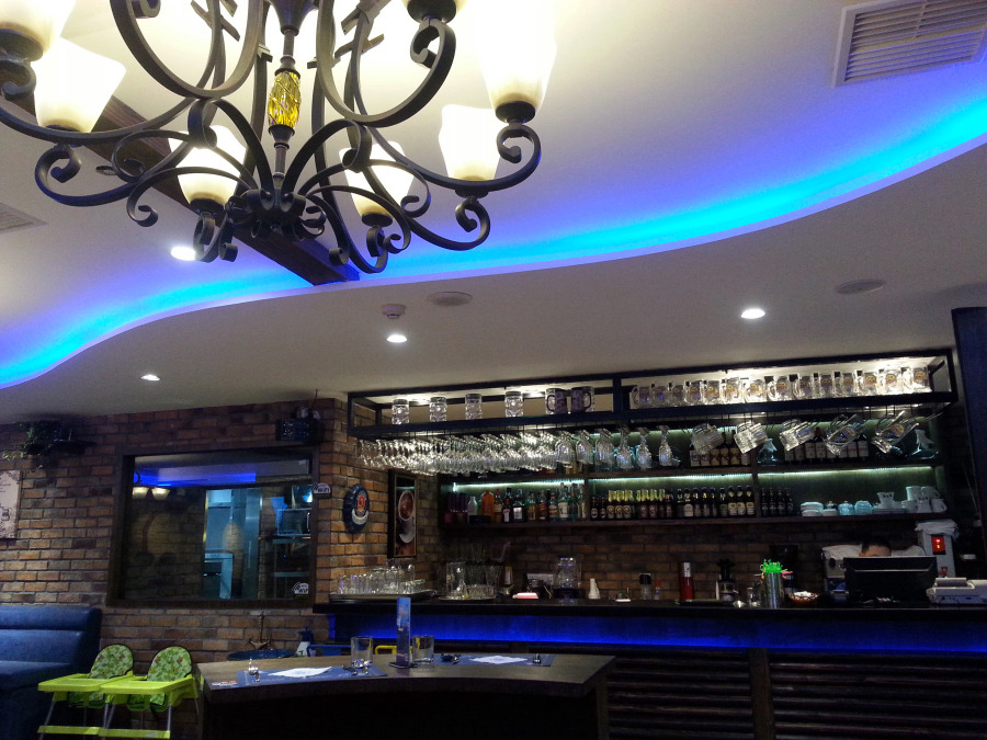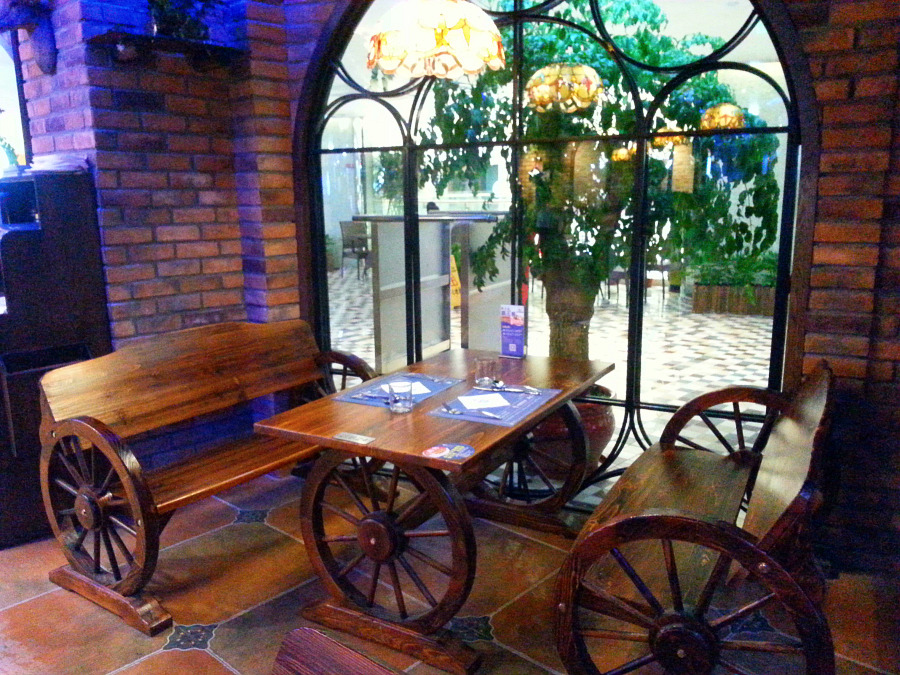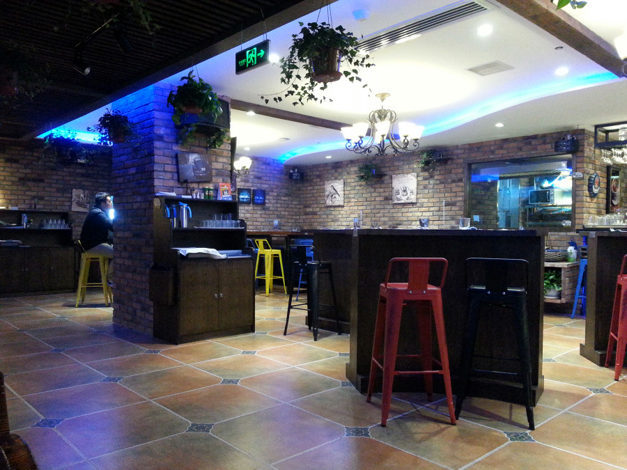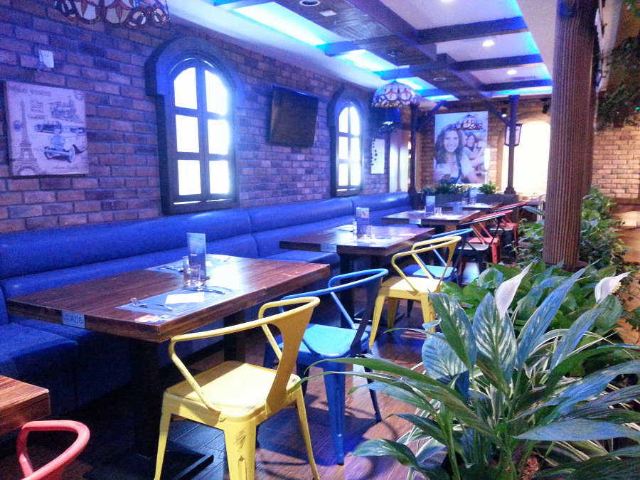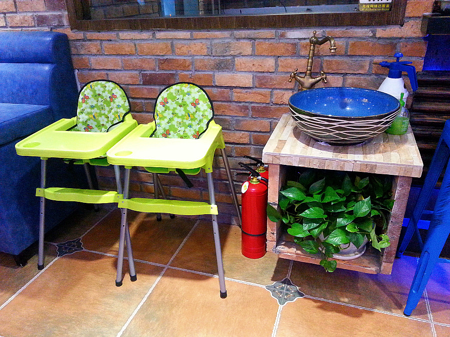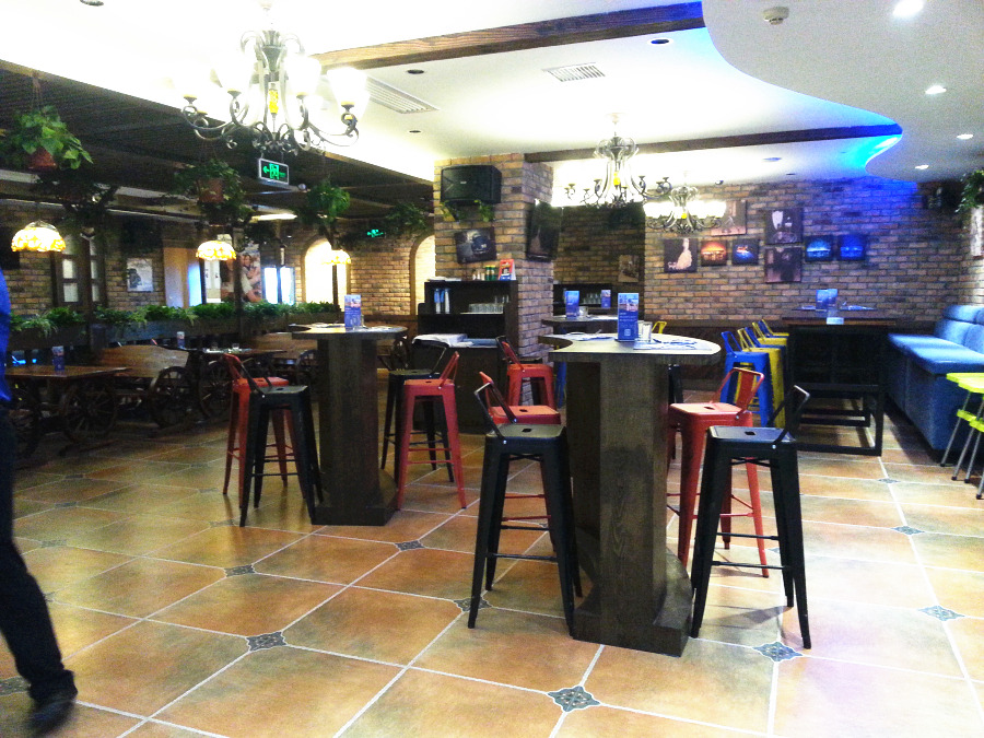 装修很有格调的一家德国主题餐厅!餐厅位于淮河路步行街内的百大·鼓楼名品中心,乘坐公交到市府广场公交站,下车后步行大约4-5分钟到达百大·鼓楼名品中心后,乘坐电梯上8楼即可看到餐厅。这家德国主题的餐厅是以德国著名的啤酒为主题的,而餐厅的标志性图标就是一个德国女郎拿着3杯啤酒,然后旁边有刀子和叉子。餐厅的门外就放了一个很大的啤酒桶,餐厅外面还有提供给排队等候的客人座位。一进入餐厅的右手边就会看到一个酒吧台,酒吧台的顶上挂着无数的高脚杯和啤酒杯,酒吧台的后面也放了很多名酒。餐厅的内部装修也非常有特色,以幽蓝色的灯光为主,整个餐厅都很有酒吧的气氛。而餐厅里面提供了三种座位,一种是适合把酒谈心的高个的座位,另外两种则是适合吃饭的桌位,其中一种是像一个木头车字一样的,很有艺术感。餐厅里面的还有很多绿色盆栽和漂亮的灯饰,就连给客人餐前洗手的洗手台也是非常精致的。餐厅服务员热情细心,一进入餐厅就有人领位置和倒水,然后再递上菜单。这里主要提供德国啤酒、扒类、饭类、甜品等等,人均消费大约50-60元左右,当时我们点了两份咖喱牛腩芝士焗饭和两杯金桔柠檬冰爽,两杯饮料点了以后几分钟就上来了,因为饭是要焗的,所以等了大约10分钟才上来,这个可以理解的。而且这个饭的份量很足,味道也很好,芝士味道很足,牛腩也很大块,很入味。总体上这家餐厅无论是餐厅环境、服务水平还是食物品质,都是值得推荐的!