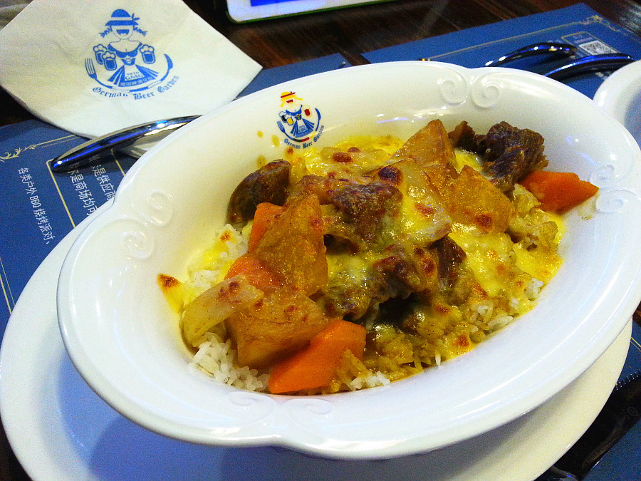 而且这个饭的份量很足,味道也很好,芝士味道很足,牛腩也很大块,很入味。装修很有格调的一家德国主题餐厅
