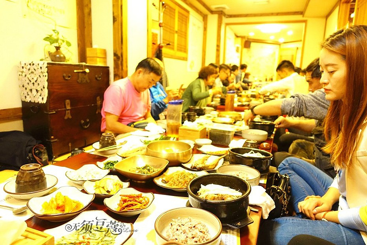 逛完市场已是傍晚,这晚饭自然是选择地道的韩国饭了。韩国全席“韩定食”呈现的味道,就是韩国饮食文化精髓的一部分。 韩定食(Hanjongshik):韩国式的客饭、也称为韩式套餐。是以前的宫廷料理,后被融入各地特有的乡土饮食,慢慢的韩定食就将韩国饮食文化达到极致。而味道是:酸、甜、辣、鲜、香。 韩定食讲究排场,都是由前菜、主食、副食、饭后食为序,将所有菜品都同时摆上餐桌:泡菜、汤、生菜、熟菜、鱼、肉…… 烹饪也是:拌、蒸、烤、烫、拌等多种。在材料、调味、配色上都很讲究,看起来精致让人很有食欲。餐具上也较为传统,所以一顿好的韩定食,不只是吃到美味的食物,还会让人也体验到饮食文化。 今天去到的这家韩定食店,就在釜山国际市场旁边,是当地人喜欢的餐厅。今天点的是牛肉韩定食,一位2万韩元,我这个笨蛋不会换算汇率,大概合人民币120左右,价格和国内(北京)差不多。 如果喜欢韩式料理的,有机会可以来品尝一下。