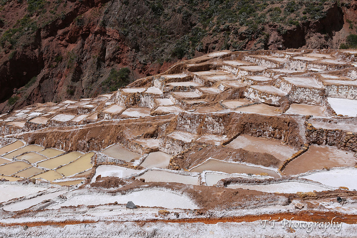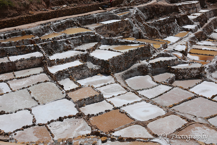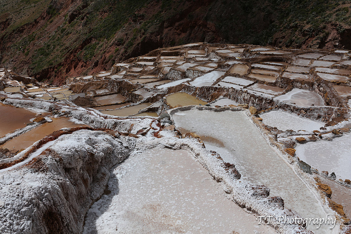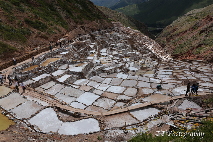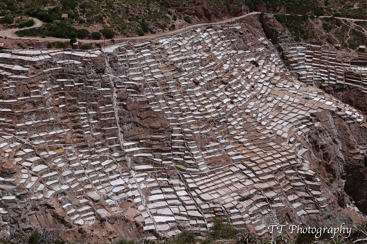 Maras Salinas盐田更壮观,梯田不同形状的好歹见过,这么大规模的盐田却是第一次见到。半山腰上导游和司机特意停下来让我们照照远景,这个盐田也是印加时期保留下来的,至今仍然运作着。