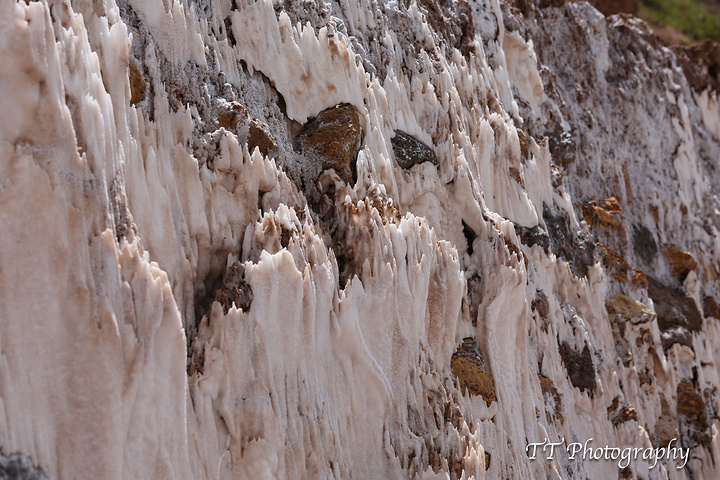 我用舌尖尝了尝咸泉水,不同凡响咸的发苦,这里特产一种粉色的盐(含铁量高),很漂亮。
