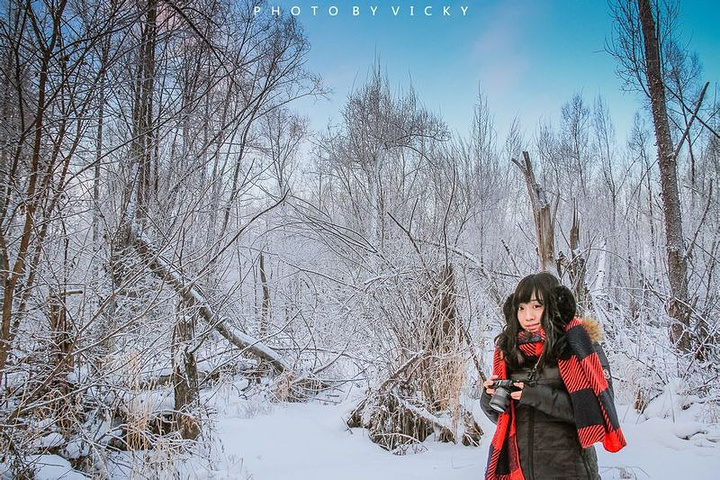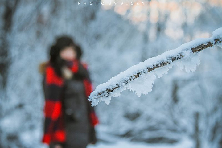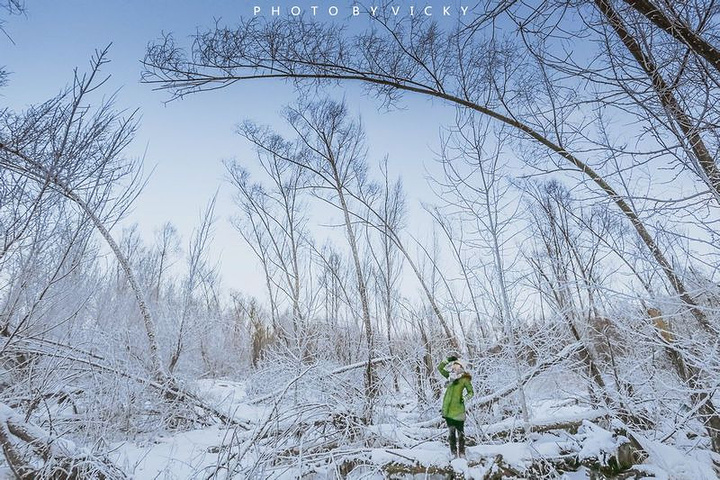 不一会儿就到了雾凇聚集地,老板告诉我们,马路边上的雾凇基本都下来了,要看到的话要走进去去河边看。犹豫什么!走!
