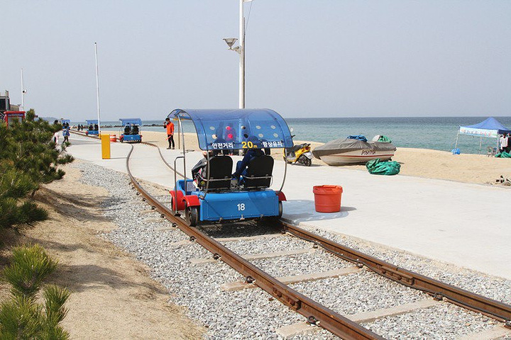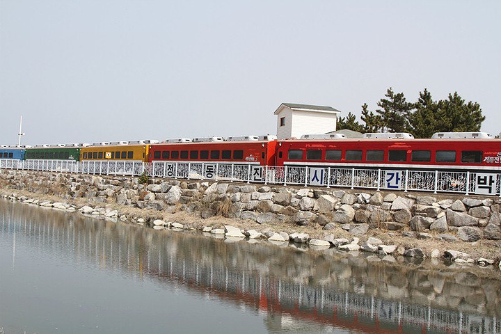 参观完小羊后,中午12:30前往正东津 正东津:这是韩国的人气景区,在这里可以欣赏浪漫的东海美景,品尝新鲜美味的海鲜。 正东津火车站:从东海站出发,搭乘火车便能前往世界上离大海最近的火车站正东津站。火车沿着海岸线慢行,时常能看见铁轨右侧碧蓝的大海,这段短暂火车旅行的中间会间歇停靠墨湖站站点,全程大概需要30分钟。正东津站下车,很容易在第一时间为迷人的近海所吸引,无需出站,在火车站内就能尽情欣赏东海风景。平静的海面,没有惊涛拍岸也能无声息的动人心弦!