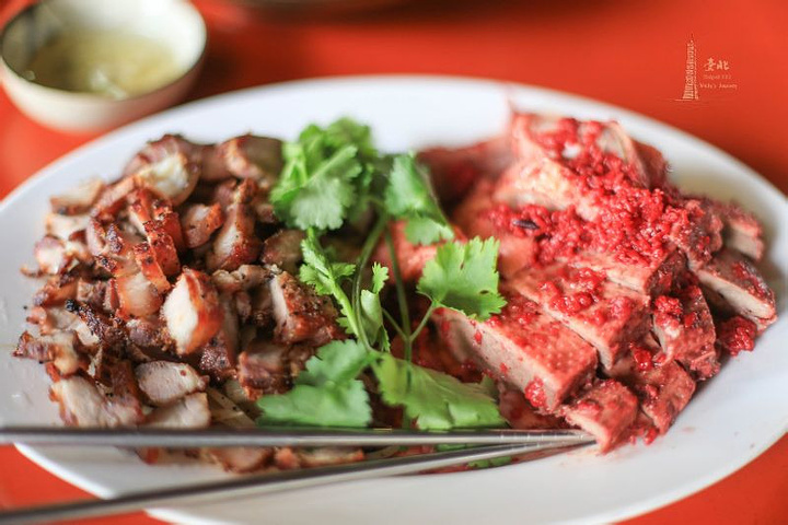 左边的是正宗的乡村土猪肉,吃起来非常非常的香!!右边是鸡肉,上面淋上了客家的传统配料