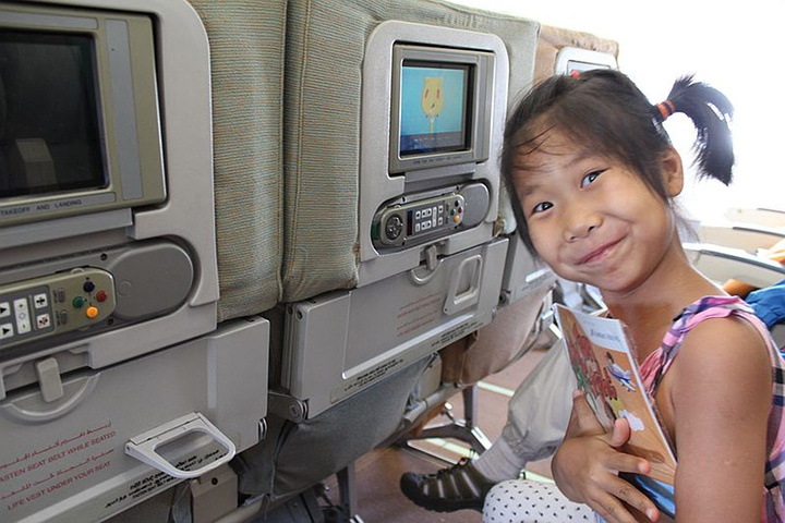飞机的显示屏可以直观的显示飞机驾驶舱前方的景象,航班还给小朋友赠送斯里兰卡航空公司的儿童游戏画册。