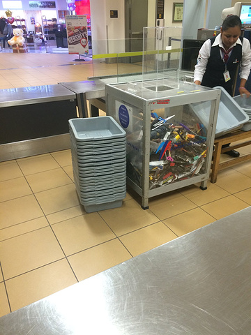 话说秘鲁人民绝对是战斗民族,这个管制刀具带的都是神马!要去打群架吗!!! 在坐上出租车的时候突然蹿进来一个大叔拿着一公文包跟我们打招呼 聊了一会儿才发现原来尼玛是个旅行社的,狂向我们推荐团,还陪我们去了DDC买马丘比丘的门票 为什么我们没有在网上买马丘比丘的门票- -1是因为淡季,2是据说那个网站很多卡刷不过去,刷过去的很快被盗刷,有人当天下午就发现自己的卡在巴西消费了。。。