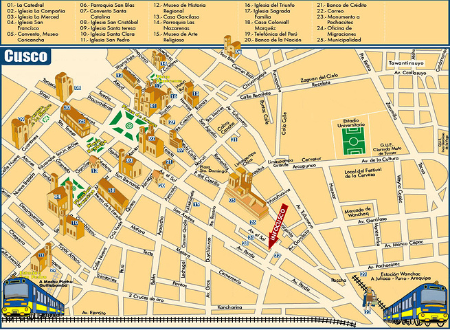 这个是库斯科的地图,DDC在大学的对面,一个很小的巷子里阴暗的房间。。。 不过这就是南美城市的特点了,基本都是破破烂烂的样子,不要怀疑人生- - 学生一定要带ISIC国际学生卡买票才能有优惠噢,嘎哥拿着ucla的学生ID他们根本不认!! 记得去马丘比丘的时候要带好护照和你的ISIC卡,没带全会让你重新买票的 两个人票价是200sol,我是65sol学生价,交好钱给你一张白纸打印的单子,这里我又要怀疑人生了 看在大叔如此卖力的份上,还请我们打了个本地特惠价2sol的出租车。 我们就顺利入团了!