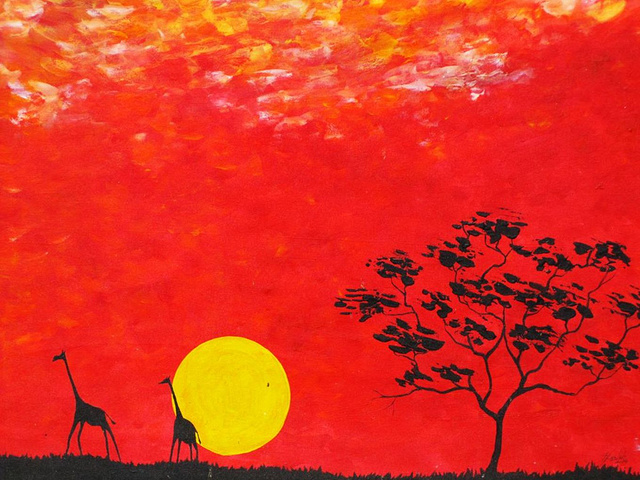 落日和长颈鹿