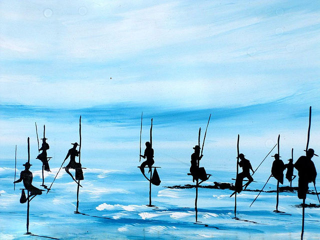 高脚渔夫。这场景是作为锡兰名片最常出现在世人眼前的,锡兰人在海上立起一根木杆,上面架上一根横称,便坐在上面钓鱼,只是如今几乎不再有人用这种方式捕鱼,这种场景如今仅仅做为给游客观摩拍照的一个形式而存在着。
