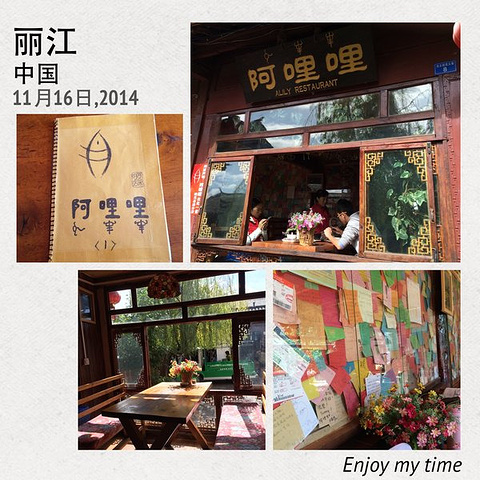 古镇里吃过几餐,印象都是贵且不好吃,唯独“阿哩哩小吃”是个例外。它是一家有特色的小店,环境装饰的也很不错,而且物廉价美强,我们吃了两餐,强烈推荐。就在面对木府门口的左侧巷子里面,即在客栈通往木府的路上。