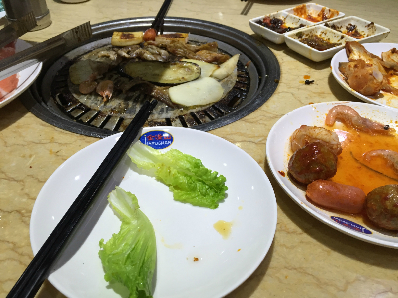 烤了很多,最爱吃的还是烤五花,因为本身就可以烤出好多油,然后放上茄子、红薯、土豆和基围虾等吸油的,相得益彰的感觉,都很好吃。