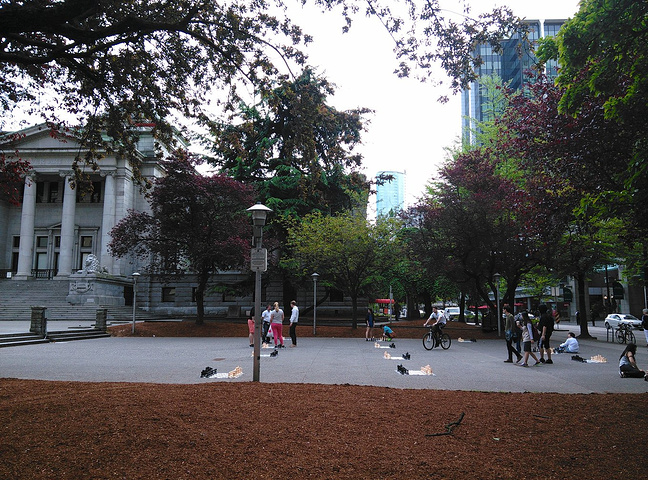 《【加拿大逐春记】枫叶之外的意外惊喜》中提到的 温哥华艺术中心 攻略艺术院门口摆了很多国际象棋的棋盘,好像是...艺术院门口摆了很多国际象棋的棋盘,好像是在搞个什么活动街边的艺术家来自游记【加拿大逐春记】枫叶之外的意外惊喜