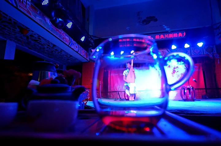 下一个目标,就是感受慢生活,窄巷子的蜀韵园。 这个地方费用较高,周末拒绝用团购,前排98,一壶铁观音168,不过总要体验下一些成都的传统。