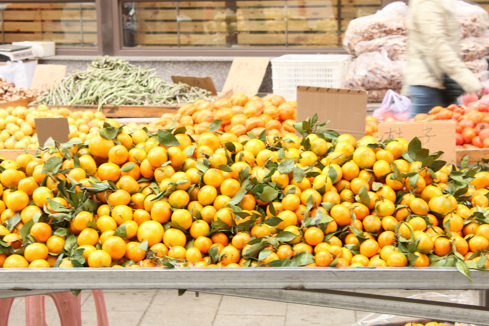 从西大街的另一端出来就有一家很大的水果店,很多水果都摆在外面,看上去都很新鲜的样子,买了几个橘子,有点凉,感觉味道还行吧!
