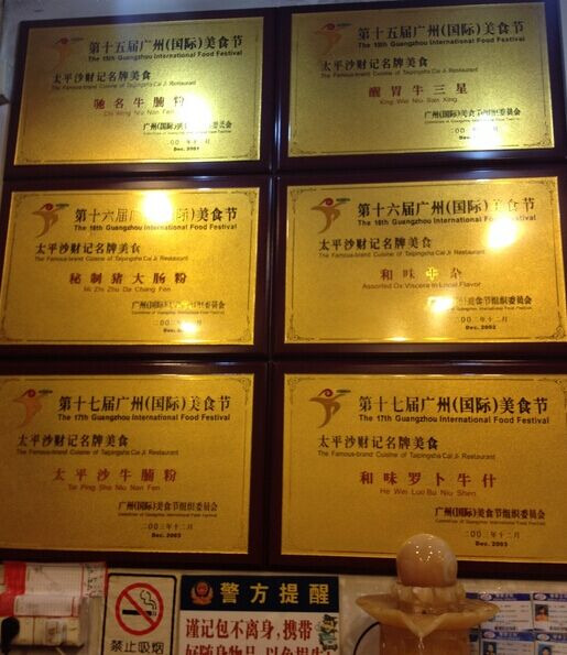 店门口挂着的各种获奖证书就足以证明这家店的老字号地位~~本来其实太平沙最出名的应该是牛腩粉一类的东西,但是我们实在是有点吃不下,于是就只要了一份斋萝卜,一份牛三星汤~~