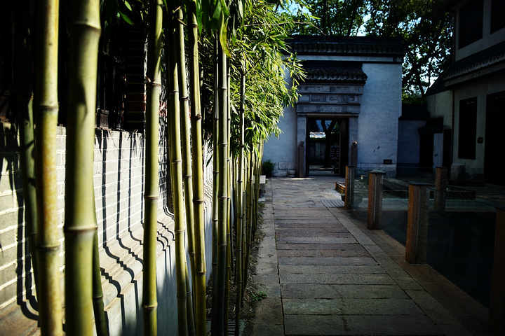 酒店没有特有的停车位,沿着这个小路停靠就可以,路两边是很大的香樟树,附近都是当地居民。前面一个门进去可以直接到南浔古镇景区内。上午8点之前下午4点之后就不用门票了,可以直接进去。谁能想到隐藏在市井之中有一个这样的酒店呢。
