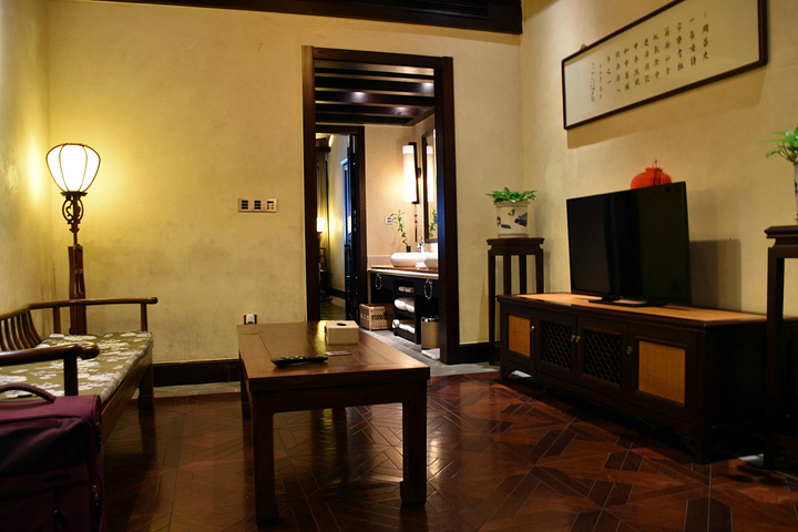 南浔赏玉阁沉香酒店在水乡古镇南浔,南东街100号出了酒店门口右手边步行不到两分钟就可以走进南浔古镇景区。2014年1月开张的酒店,据说是按五星级酒店标准配置建造的。民国文化主题,外加温泉度假酒店,酒店好像还在申请加入世界小型豪华酒店。酒店本身的建筑是由民国时期的八牛之一的梅家西式建筑院落改建而成,主体建筑呈L型,楼高2层,装修风格融贯中西,意境独特,置身其中,闻香、品茗,做文人雅士。至于这座建筑之前是干什么的,我问过三个人有三个不一样的答案。酒店服务员说是梅家以前的住宅,路边小贩老板说之前是一个学校,景区小餐馆热心老板说以前是梅家的纺织工厂。这应该不是一座很古老的建筑,可能就是在民国期间的。具体的无从参详,因为问大堂经理也不得而知。总之我个人很喜欢这样的酒店。外加最近痴迷电视剧无心法师,于是想着穿越一把。有人会觉得住这样古色古香酒店会恐怖。可是作为酒店控的我,喜欢的不得了。酒店地理位置如何?如果自驾开车导航来的话导航会直接有定位,但是弯进来的小路是单向车道,外加里面在修路,所以很难开,我一开始没有找到,打电话给酒店,好在他们安排了工作人员来带路,大约等了5分钟左右就来迎接了。速度还算快。