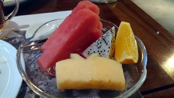 晚餐酒店里可以享用,一百块一个人的价格,不单独点菜,是酒店配好的。酒店方说这个价格已经是半卖半送了。1米二以上儿童是60一个人。我家宝宝虽然没到1米二,我们还是加钱了,因为深怕不够吃啊。其实后来发现是多虑了。冷菜是按人头的,分好摆盘好在自己前面。搭配的菜,不少哟,5菜一汤,还有一盘点心和三人份的水果,几个热菜,量都很足。