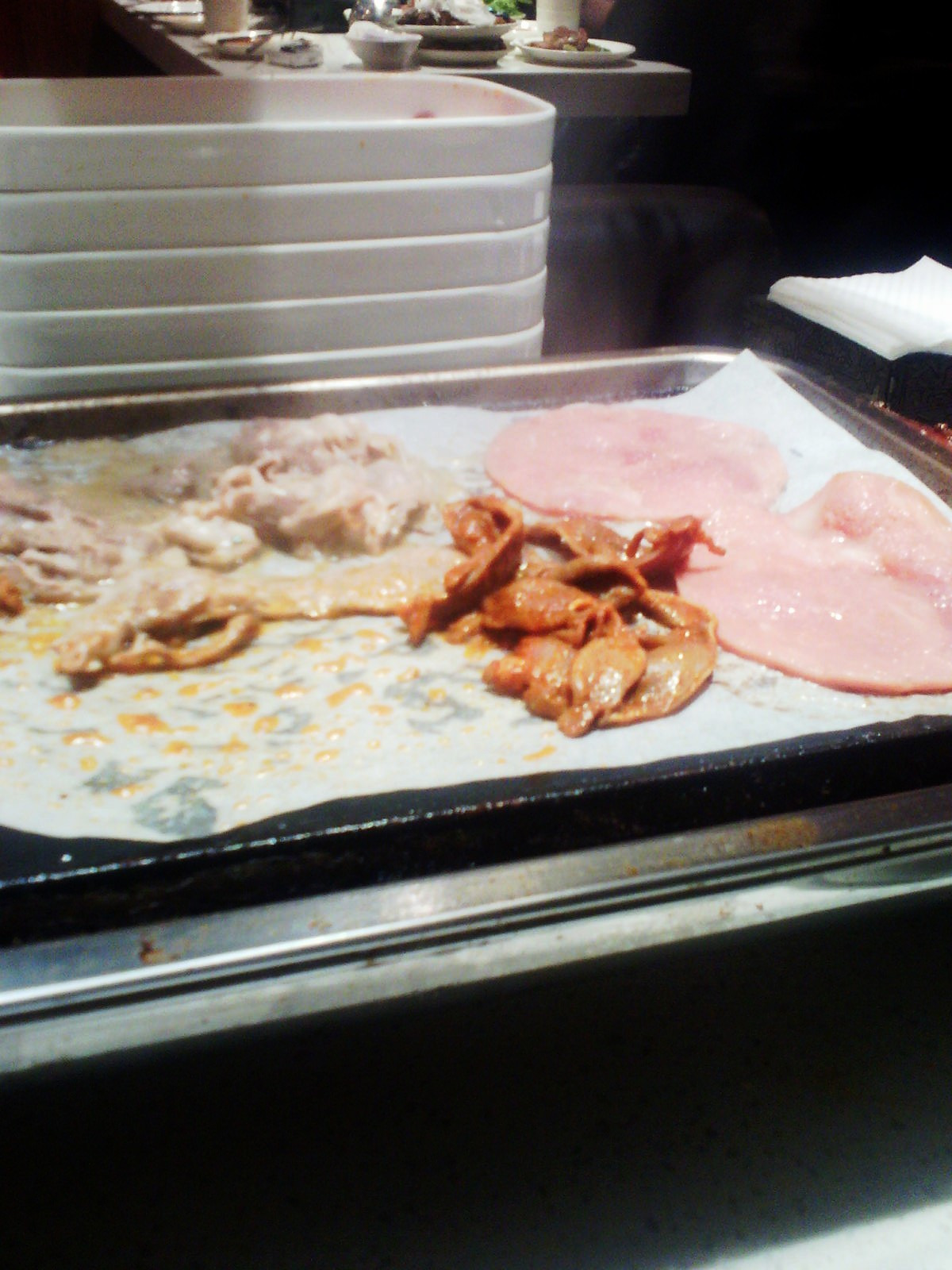 环境还好,自助餐就是个挤,这家烤肉是自己烤的那种,取喂好的生肉,然后有铁板烤制。还有熟食去跟凉菜去,主食区,巧克力火锅,饮品区。
