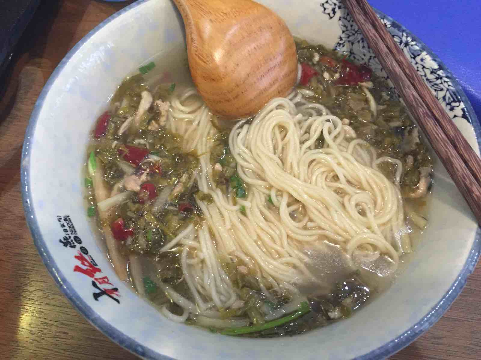 【雪菜肉丝面18元】端上来的时候面和浇头是分开的,需要自己放进去。雪菜肉丝的浇头对我来说稍稍有点辣,因为我平时不怎么吃辣的东西。面虽然是现煮的但火候可能没有控制好,所以吃起来稍稍有点糊的感觉,总体味道不错。