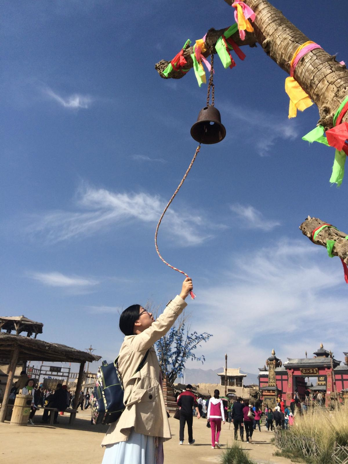 影视城里有很多这样的树和摇铃,小伙伴随手一摇,铃声悠扬清脆,