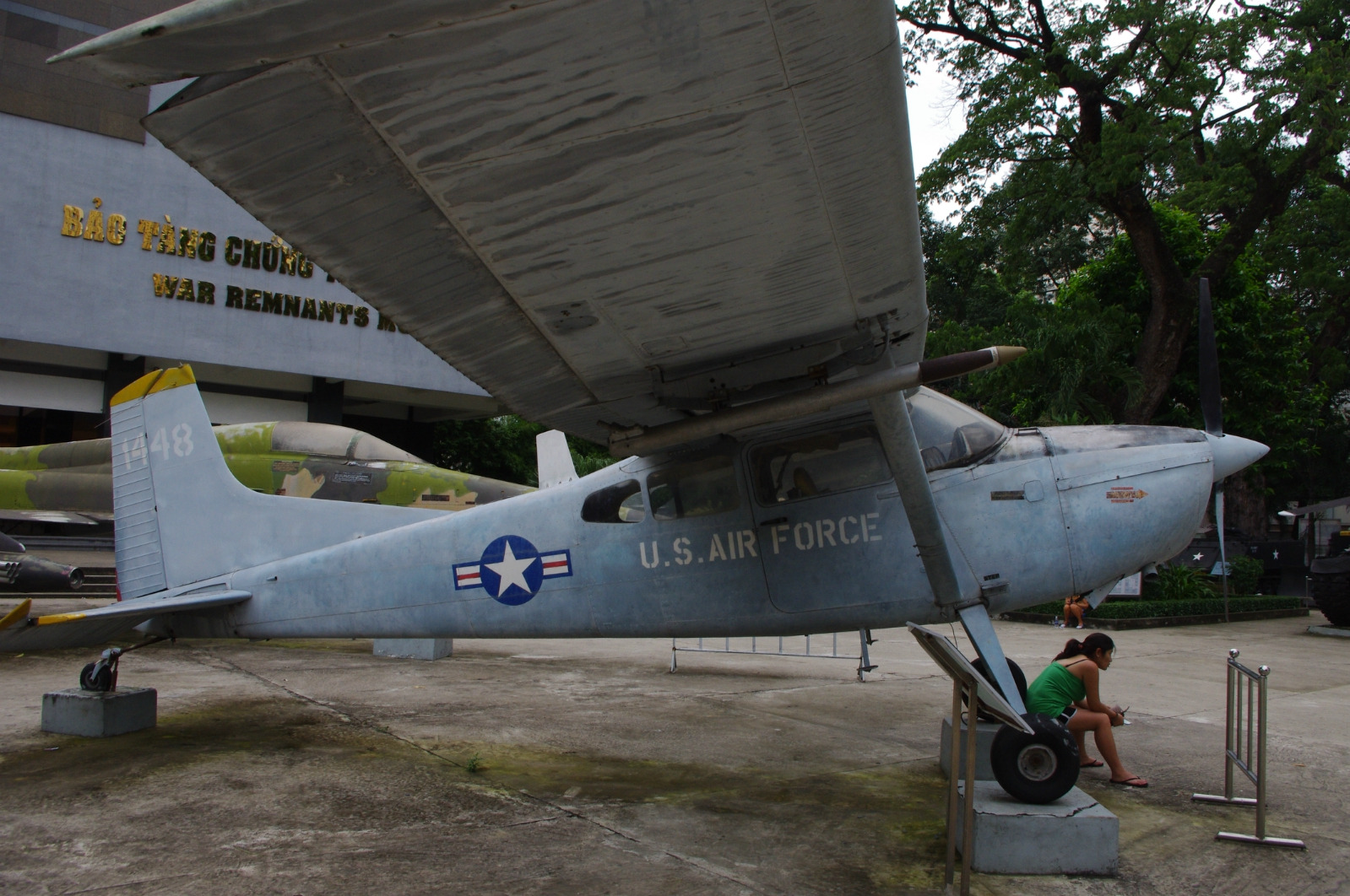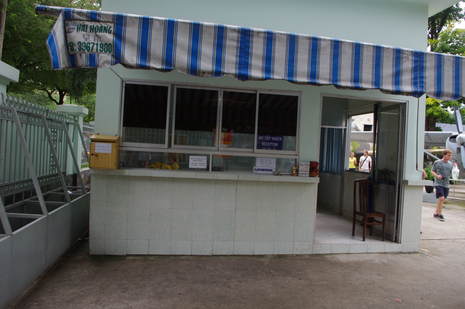 购票进门,主要参观的时间,超过4点半就最好别浪费钱了,因为这里最少看一个小时,左右两边都有当时美国攻打越南是留下的飞机和坦克,现在成了模型展览了。在门口左手边,有一间暗室,走进去发现是战争时期用来关押囚犯的监狱,感觉非常阴深。