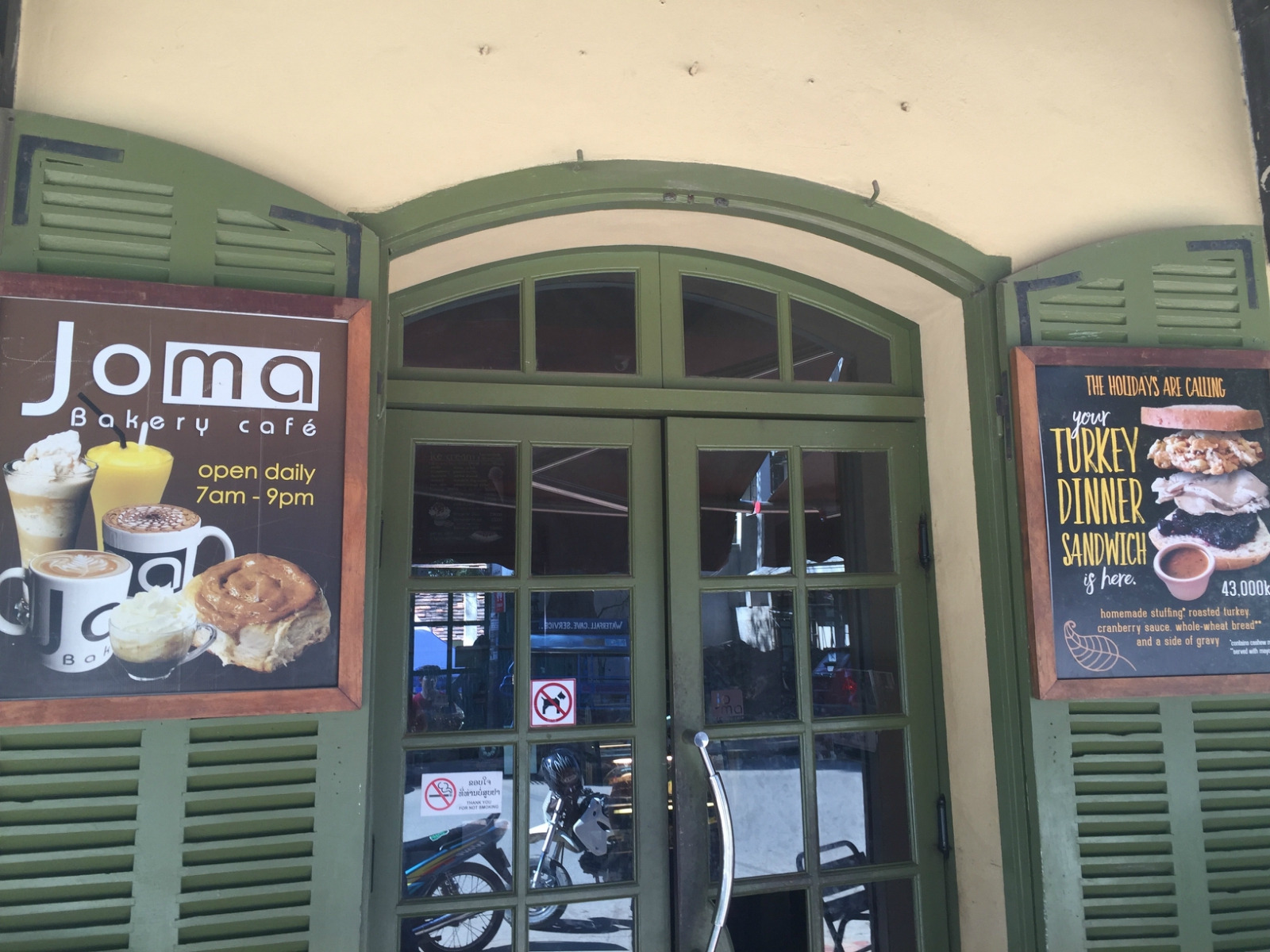 整体的感觉地理位置还不错,Google可以搜索到也 比较好找,就在邮局和夜市旁边,人流也不小,很出名的一家店,貌似在东南亚有不少分店。琅勃拉邦的湄公河旁边也有一家店,价格比国内不少咖啡厅要低一些,性价比还不错,很多外国人前去拜访,还是可以考虑去签个到。门口有价目表,点餐有显示屏,通行英语,稍微有些老挝口音,点杯饮料一个甜点,一个人人均在30人民币左右,环境也还中上。去的时候空调开的不是很勤快,沙发座比较舒服,楼上还有很多座位,服务生的态度和送餐速度也很棒。Wi-Fi速度就有些慢,密码就写在点餐收据条上,信号有点差,要链接几次才能成功。总的来说还是不错,在这个相对不太发达的城市也是蛮有感觉的。基本属于中等推荐