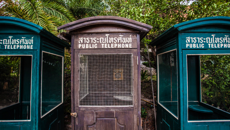 森林公园中,一些现代化的设施,也被装点的格外复古,比如仿古的木质电话亭,造型怀旧的垃圾桶,以及树木上的提示牌,都展现着独特的泰式幽默。