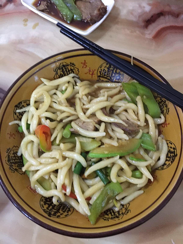 晚上,去张掖著名的甘州小吃一条街吃了特色面食,搓鱼子。特好吃。跟爸妈旅行吃饭,总也想不起拍照,这次旅行吃的饭貌似只拍了这一张。此游记就没有任何美食的记录了,连美食街也忘记拍了。跟自己旅行节奏还是不同滴^_^ 张掖还有很多特色面食,牛肉小饭是我吃过最好吃的早餐,还有很多面食都很好吃。