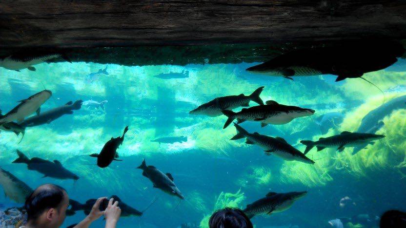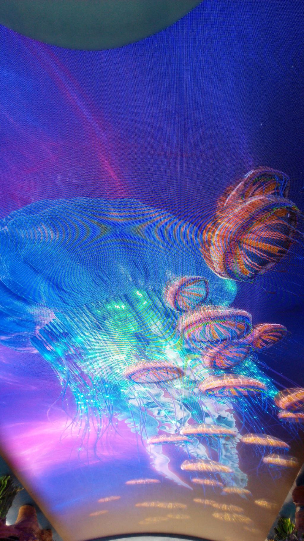 珠海长隆海洋王国在横琴新区富祥湾海珠长隆度假区内,门票一直都比较贵,成人价格要350元,儿童不到一米五的话可以购买优惠票,至于低于1米的那个标准基本是多余的,几乎是婴儿才能享受的价格,没意义。可以跟当地团一日游,包车来回,在网上有很多产品可以选择,第一种是门票自驾出发,门口就有停车场,第二种是门票包来回车的,还有一种是门票+酒店。早期的话如果自己去的话交通不太方便,现在坐公交车乘坐14路、63路、86路和k11路,因为是10点才开园,所以早点出发比较合适。在进门前已经感受到珠海长隆王国的气氛,珠海长隆海洋王国是集海洋生物和娱乐于一体的游乐场,有许多海洋生物造型的模型供游客拍照。进园的时候一定要弄大乐园的地图,上面有详细的信息。进门后马上到达海洋大街,海洋大街主要是一些小饰,例如帽子,雨伞等物品的小商店为主,经过一个通道,但最吸引游客的还是海洋大街屋顶上的led屏幕,播放着海底生物和动物,其中水母和八爪鱼最为突出,超级大的八爪鱼在游动。