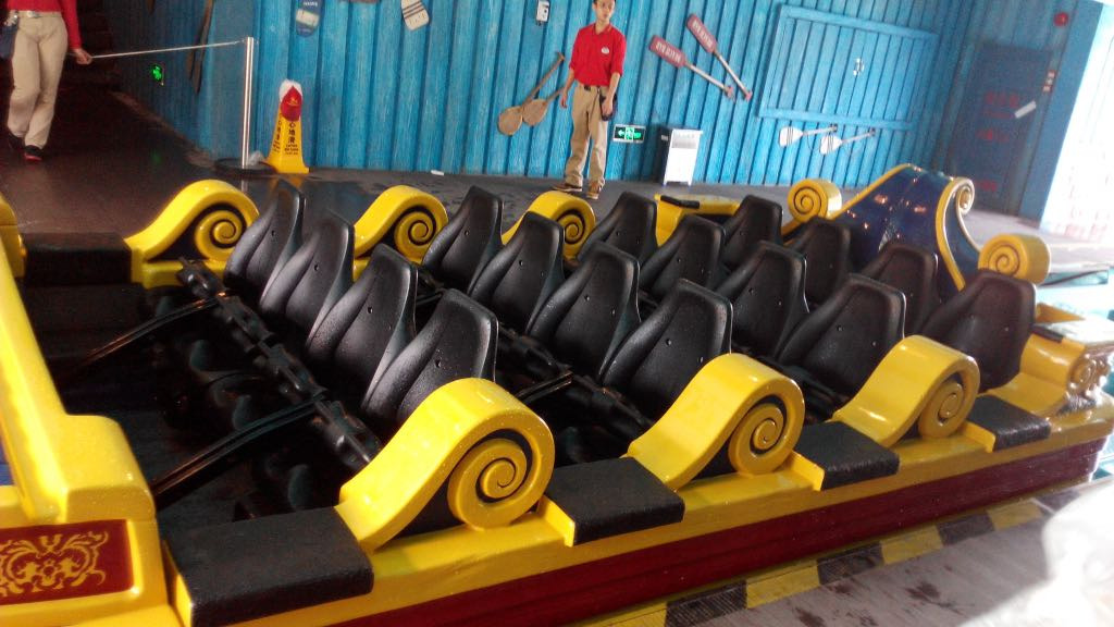 过了海洋大街通道后,左边是海象山,海象山的主要以水上机动游戏为主,这里的设计很特别,上面是激流冲浪的轨道,下面是海象馆,游客可以透过海象馆的玻璃看到冲浪人的表情。这里的机动游戏适合幼童玩,有小朋友最爱的旋转木马,排队的人还是挺多的。
