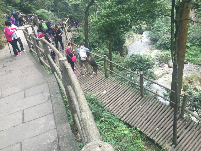 不是猴坏,真的是人给教坏了。猴子只要扒住游人,一般游人就怕了,七八尺男儿见到猴子倍儿长的獠牙势必会怯让三分。此时,另一波当地的大妈会一手拿着竹竿,一手拿着一袋玉米粒来跟你说:快花五块钱买一包吧,买一包给猴子它就走了。结果当然是屡试不爽。还记得当时我在九十多岁老奶奶那买的玉米吗?这边的猴子连看都不看。不巧同行的女伴也被抢了五块。人家毕竟是当地的,毕竟有一百种让我们活不下去的方法,随它去吧。注意这一定不能拿路上买的竹竿打猴子,只要你打了,没有比你更惨的,相信我。我就见了去打针后下山的游客。 不过刚进入猴区的坏猴子并不代表山里的猴子就是这样。大多数游客和旅行团在坑爹猴子之后就会原路返回坐车上山,而我们是继续前行,之后见到的猴子们霸占了必经的吊桥,然而并不像之前的猴子,我把九十岁大妈那买的玉米粒给了他们,他们一点也没抢。所以说走这条道看的更多,体会的也更多。 期间猴子最憨态可掬一面:我们在努力爬向第一天的落脚地途中,听见有人在打呼噜,定睛一找,一个小猴子在书上睡觉打呼噜,哈哈哈,不过我在掏出手机之前把它吵醒了。不好意思咯小猴儿,打扰你美梦了。