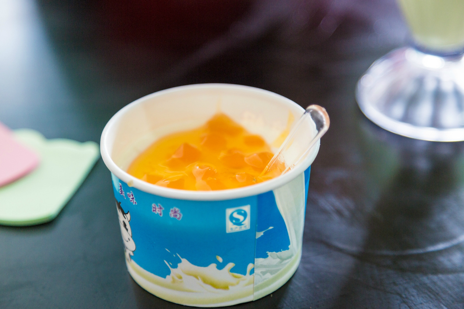然后我俩开始点东西,这时候又要感谢万能的大众点评了,发现了他家的团购,14.9元,一杯奶茶,加上一杯酸奶,然后我们就点了一杯奶茶,再加上一个黄桃高原酸奶,先说奶茶,味道中规中矩,没有难喝,但是没有特别多出彩的地方,但是酸奶就不一样了,超级好喝,高原酸奶给人的感觉就是不一样,特别纯,我觉得就跟那些专门的新疆饭店的酸奶一样一样的,酸奶上面加的黄桃也一点不腻,总之就是超级好喝,第三天我离开泸沽湖的时候,已经上了车,硬是跑下来又买了一杯,嘿嘿,赠送的小蛋糕也很不错,刚刚出炉的,热乎的,没有任何添加剂,吃起来放放心心!
