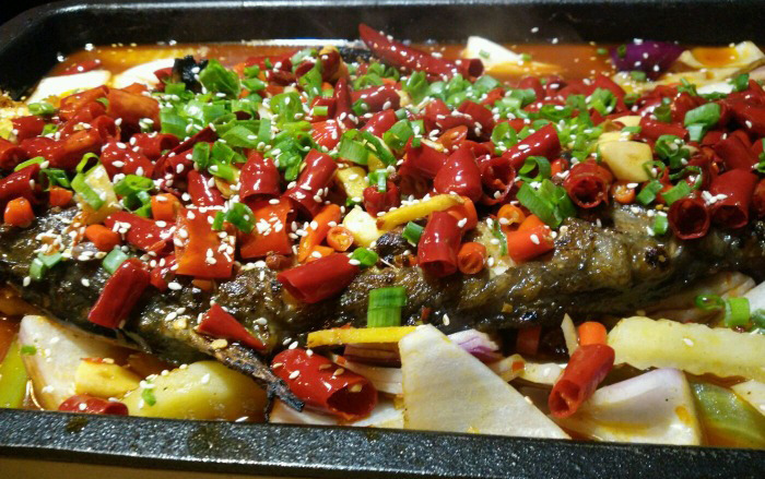 这家餐厅的鱼外脆里嫩,外边的鱼皮很脆爽,内里的鱼肉被刀切开,让味道很好的融入其中,加上调料的完美,给我舌尖上更多的享受。我最喜欢的酸菜味烤鱼,一份铁盘,上边横卧着一致烤鱼,烤鱼顶上是酸菜和小樱桃,和别家的烤鱼不同,这家餐厅的烤鱼不仅仅在味道上诠释出了努力,更在造型上下足了功夫,酸菜的酸味让鱼肉更味道多变,给我带来不一样的酸鱼,充满了期待。