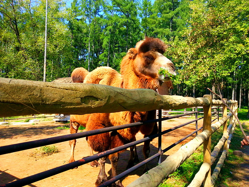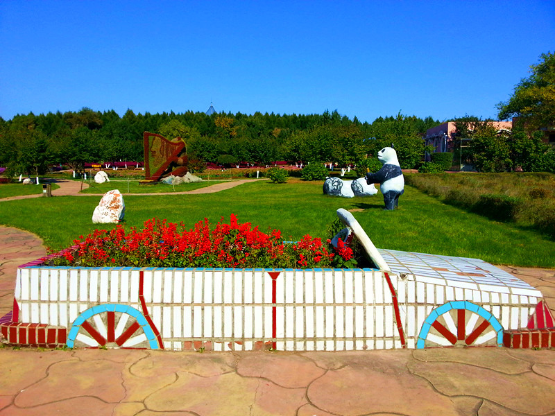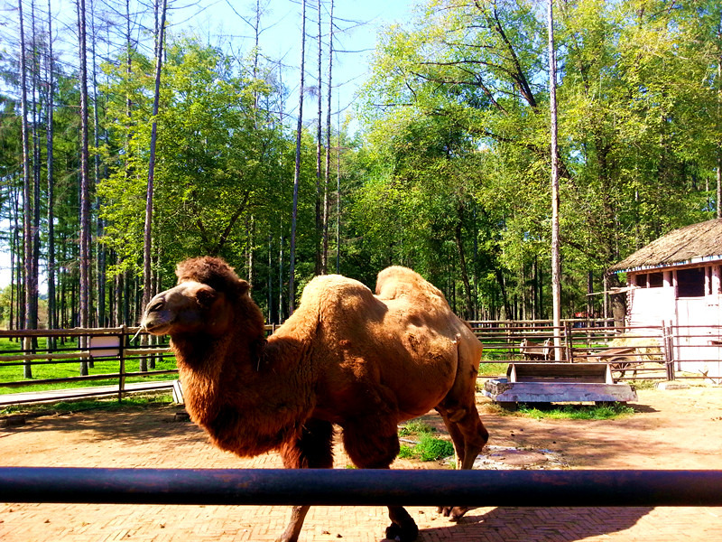 来到公园后,由两个长颈鹿相对合成的大门造型别致,极具特色,十分吸引人。进门以后就是一个多功能的广场,有儿童娱乐设施、展馆等等,十分热闹。继续依山而上,就来到了眺望阁,登上阁楼可以眺望佳木斯市景,阁楼内的大钟和阁楼外的一颗企运树是供人们祈福祷告用的。山部分最大的特色就是动植物了,各种珍贵品种的花草树木把园区装点得姹紫嫣红,十分迷人,水源山因此被誉为“天然植物园”。而各种三江地区特有的珍稀动物更是吸引了众多游人特别是小朋友们的眼球。动物区分为百鸟园、猛兽区、小动物村、食草动物散放区和综合动物表演场,我特别喜欢其中食草动物,比如骆驼、山羊等等。
