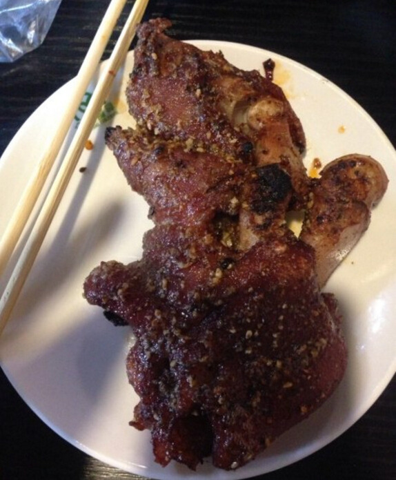 招牌的烤鸡头,说实在有点吓人来着,没有预期的好吃,大家可以选择性的来点尝试,最少4个起点