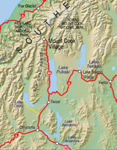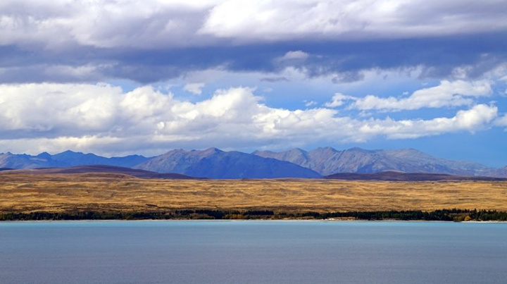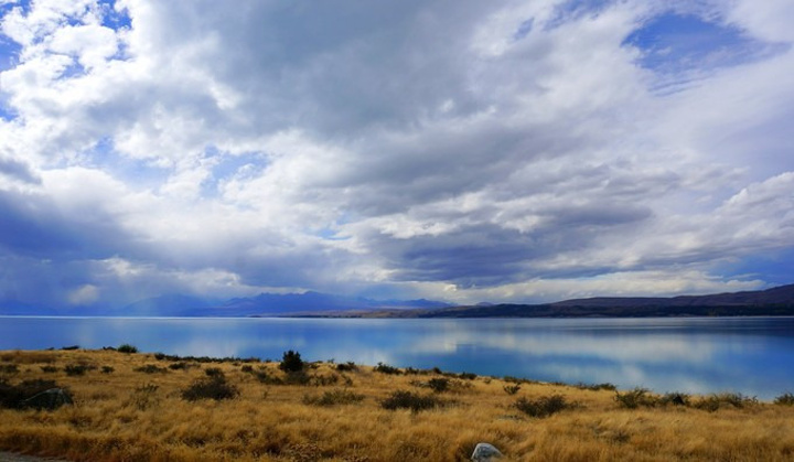 在特卡波之后,我们下一个根据地是特威泽尔(Twizel),而且要在这个不著名的地方住两晚。很多人不理解我做出的这个选择。的确,特威泽尔就是个普普通通的小镇,对它的唯一印象可能也就是其附近有卖三文鱼的地方。但若仔细看地图,会发现特威泽尔具有得天独厚的地理位置。不要说它几乎就坐落在拥有最神奇的牛奶蓝色湖水的普卡基湖(Lake Pukaki)旁边,就连与特卡波湖(Lake Tekapo)、库克山(Mt Cook)、奥豪湖(Lake Ohau)和班摩尔湖(Lake Benmore)这些较远地点的距离也在一个小时车程之间。也就是说,以此为基地,我完全可以按照天气情况和自己的心情决定去上述任何一个风景绝美的地方。加上住宿可以用物美价廉来形容,这里成为我新西兰之行选择的第一个根据地。 告别特卡波小镇已经是午后,今天下午的计划包括经8号公路至普卡基湖,然后沿湖岸向北去库克山。如果有时间的话,可以安排一下徒步。我个人比较心仪的是库克山下的胡克峡谷步道(Hooker Valley Track),在晴好的天气下可以近距离欣赏新西兰最高峰库克山,一路的景观也比较丰富。 很快,前方出现普卡基湖。这里号称无论晴天还是阴天都会显现神奇的牛奶蓝,永远不会让人失望。我对于之前错过Tekapo Blue并没有感到十分遗憾,就是因为把最大的期待放在这里。
