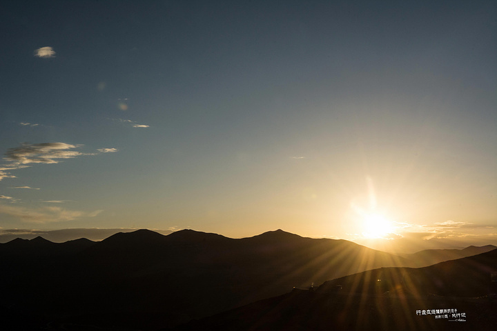 我们看着夕阳慢慢落下,还剩一点点光的时候,得继续出发了,我们一路追随着光亮,就像追随着信仰,驶向远方又或是驶向心的方向。大约经过40分钟车程,我们终于到达了新都桥镇,一个让摄影师趋之若鹜的地方。其实折多山的山路没有想象中那么难开……