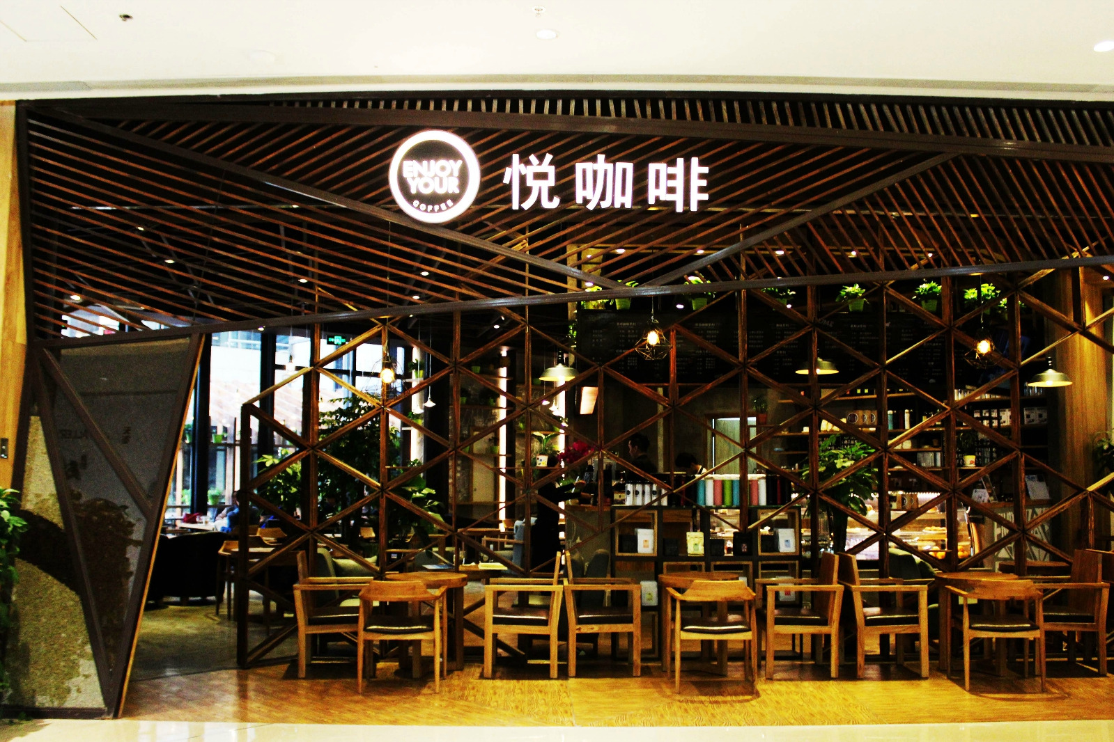 在北京就有品尝过悦咖啡,现在杭州下沙的天街盛大开幕,进门左转就能看到悦咖啡enjoycoffee的牌子。