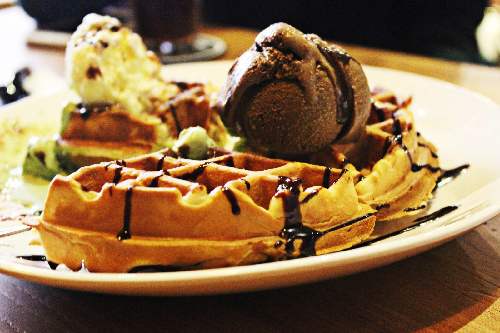 然后就是店里的松饼,很厚外面酥脆里面软软的特别爽,我觉得这是我在杭城吃到的前五的松饼了,上面配上三个超大的冰淇淋球,爽歪歪。