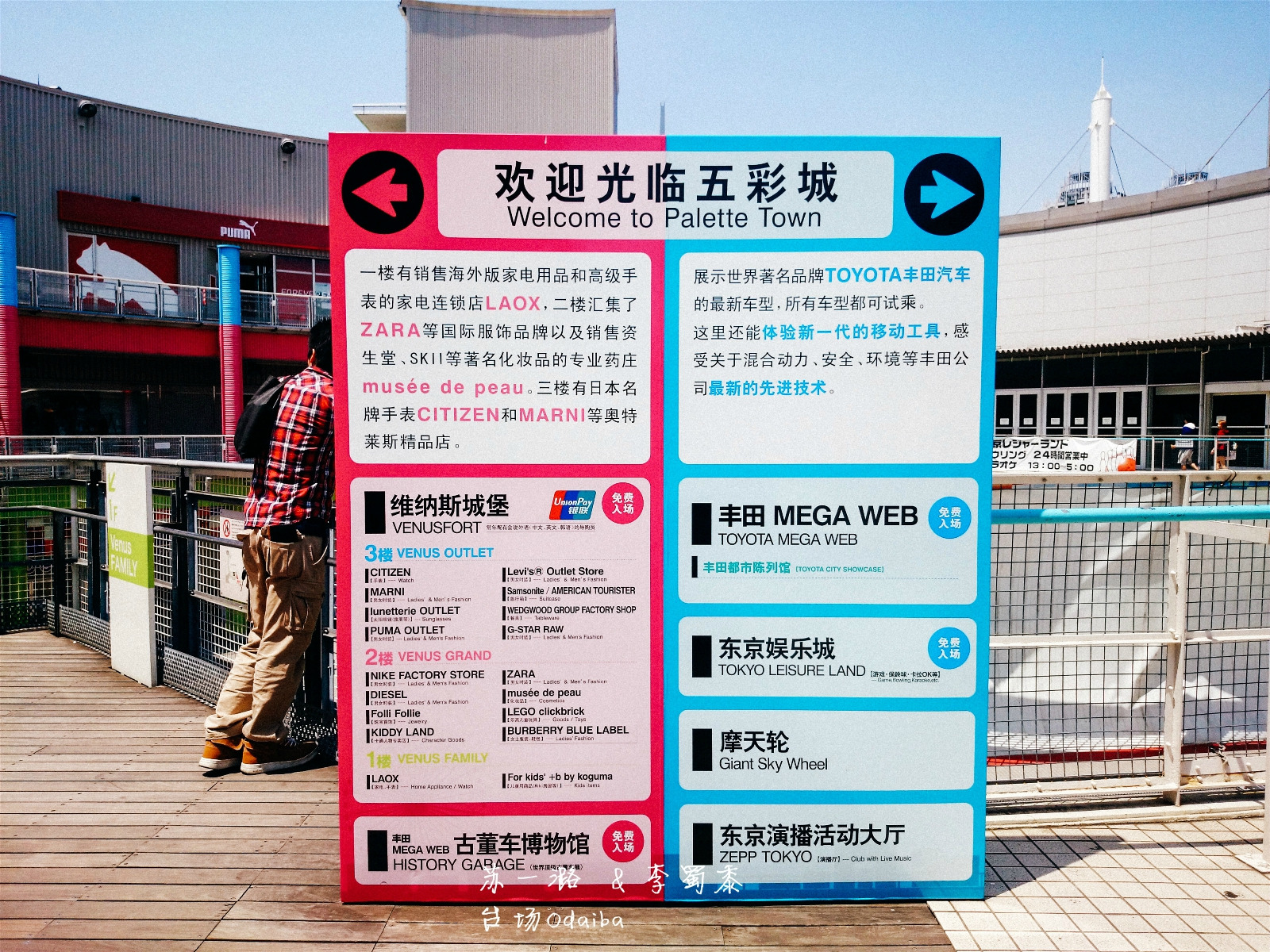 入口处还有中文的导览图,实在是太贴心,这里把Palette Town翻译成五彩城也是可以哒。从这个导览,就可以看出这里主要是购物娱乐啦~
