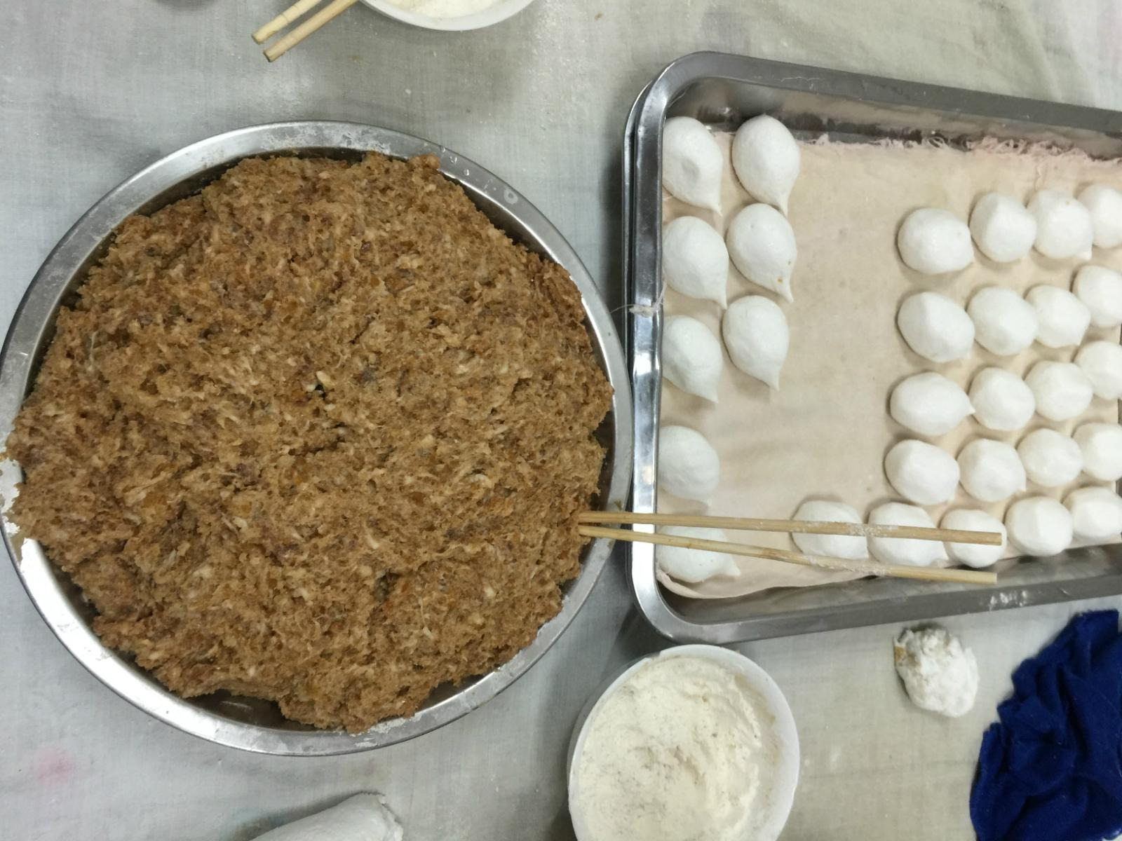 韦家巷汤圆店内有三个工作人员,一个阿姨现场包白糖黑芝麻馅,另一个阿姨现场包汤汁肉馅,墙两侧一边一个,还有一个美女负责现场煮,所有流程,一目了然,吃着真的比较放心。