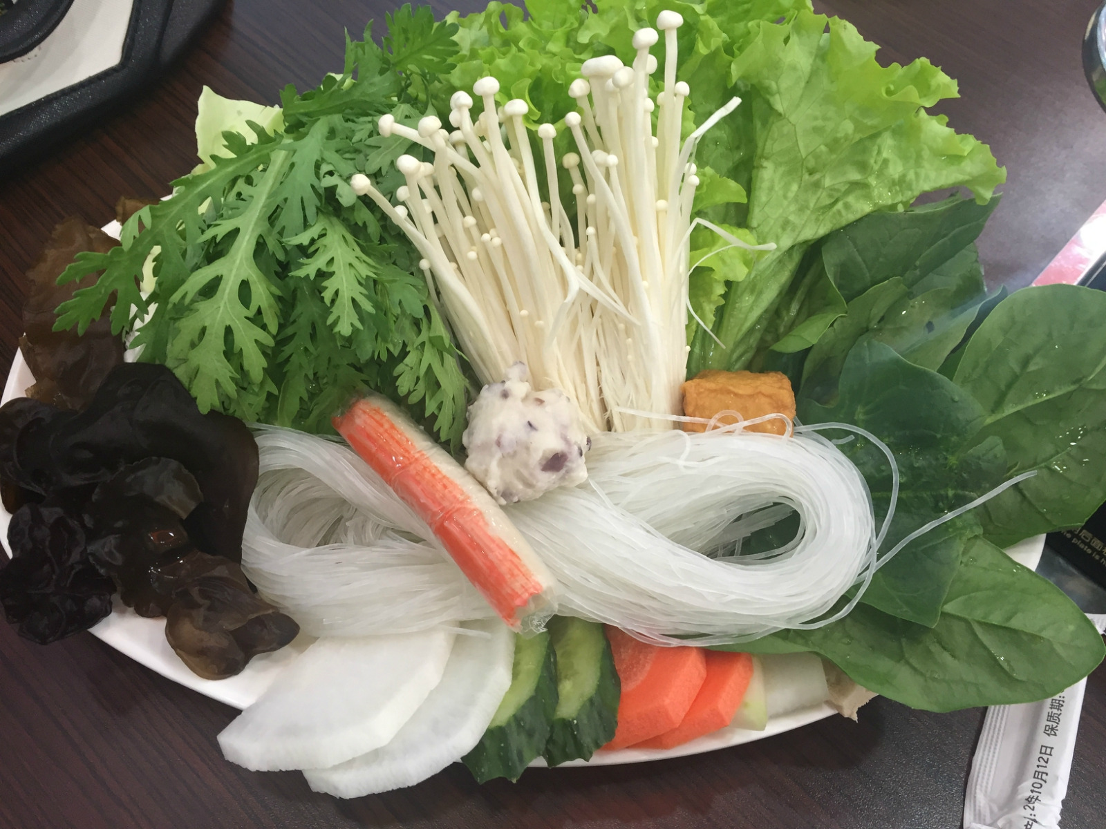 【羊肉套餐】一份羊肉一份蔬菜拼盘才40元,不过羊肉相对比较薄而易碎,蔬菜拼盘里种类很多,还有几颗丸子。