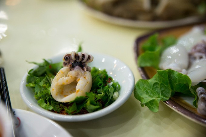 酸汤煮过的小墨鱼,蘸点配送的椒盐辣椒香料,表面咸香内里酸爽,脆弹可口,根本停不下来~